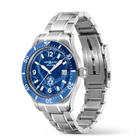 The first-ever sports diving watch for Montblanc, the Montblanc Iced Sea Automatic Date features a glacier pattern dial that gives the impression of looking into the depths of a glacier. This blue glacial pattern dial is inspired by the Mer de Glace - Sea of Ice - the main glacier of the Mont-Blanc Massif. Its texture was achieved using an almost-forgotten ancestral technique called gratte-boise. The timepiece is housed in a 41mm stainless steel case and comes with a unidirectional bi-colour ceramic bezel, an engraved case back, and a tapered interchangeable stainless steel bracelet with fine adjustment for precision fitting. The timepiece conforms to the ISO 6425 norm for diving watches and is water-resistant to 300 metres. Ident No. MB129369 Movement CALIBER Automatic, self-winding MOVEMENT TYPE Automatic movement Hours - Minutes - Seconds - Date COMPLICATIONS Date by disc FREQUENCY (VPH) 4 /h NUMBER OF JEWELS 26 Jewels Case CASE DIAMETER 1.61 inches CASE HEIGHT 0.51 inches WATER RESISTANT 30 bar (300 m) bar BEZEL Unidirectional rotating bezel BEZEL MATERIAL Steel - Ceramic SAPPHIRE CRYSTAL Domed glass box with anti-reflective coating CROWN Screwed and fluted in stainless steel with Montblanc emblem in relief DIAL Blue glacier dial with white luminescent Arabic numerals