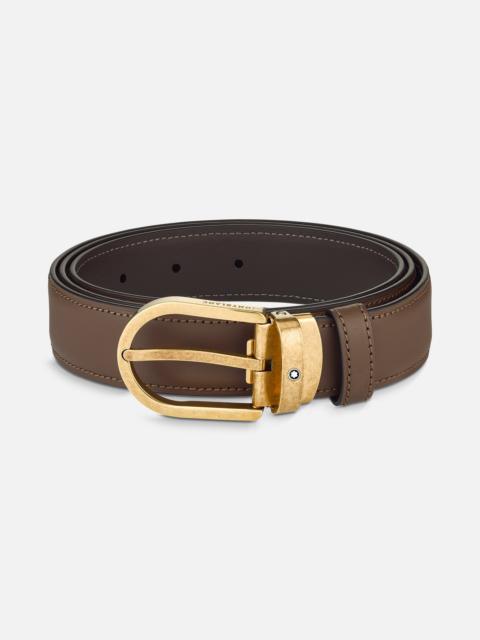 Rectangular stainless steel pin buckle. Self-adjustable, 3.5 cm x 120 cm, strap in black plain leather. This belt suits both business outfits and modern looks. Ident No. MB129455 Material MATERIAL Leather STRAP Black plain cowhide leather BUCKLE MECHANISM Easy-to-open mechanism to adjust strap length SHAPE Rectangular EMBLEM LOCATION Montblanc emblem on metal loop COLOR Black Dimensions DIMENSIONS 47.24 × 1.38 × 0.20 inches FITTINGS / EMBLEM Emblems are manually centered, one by one, by our artisans. The emblem is centrally positioned, but the manual pressure operation with the machine may shift the emblem itself. This is a characteristic that does not compromise the aesthetic of the product and could not be accepted as complaint according to our policy.