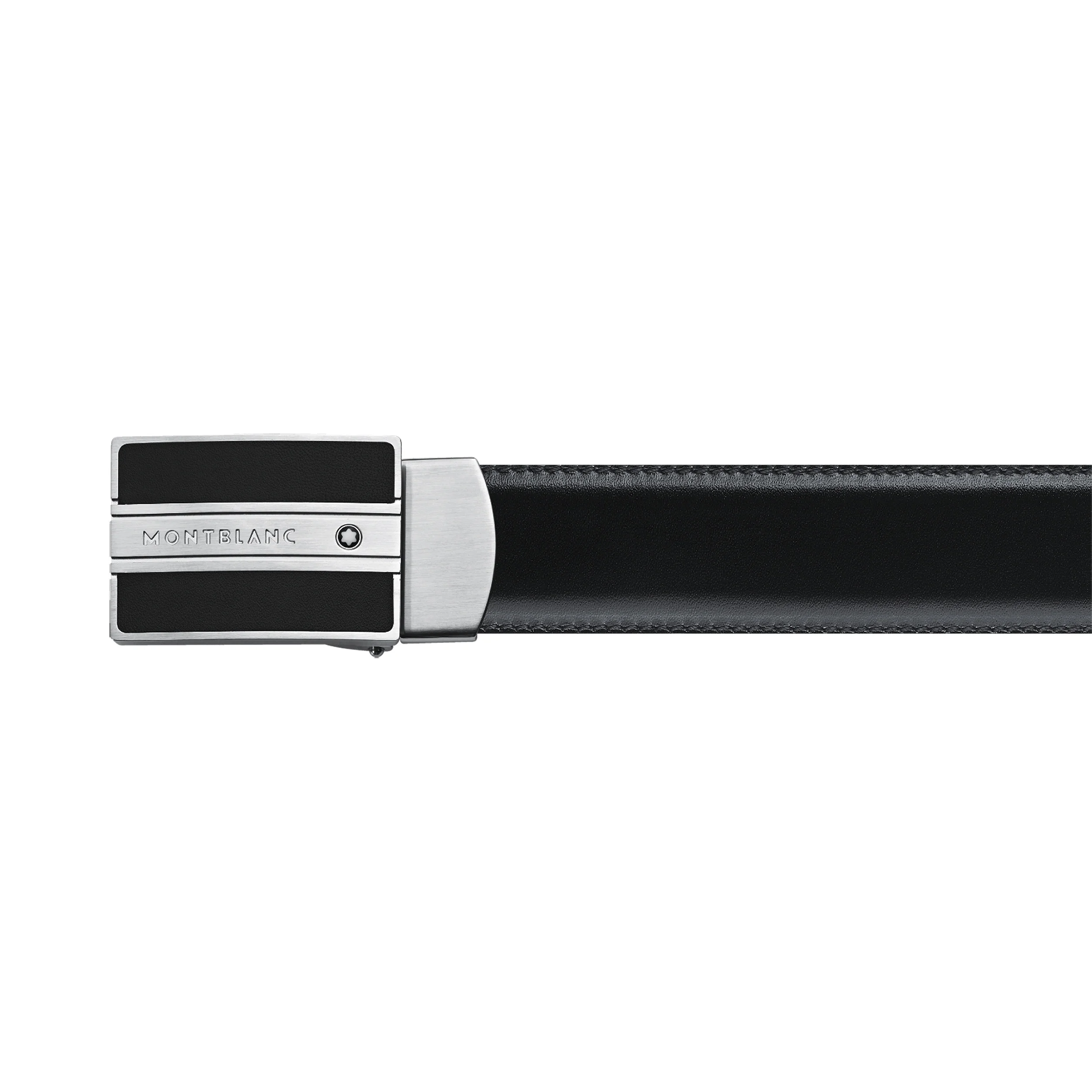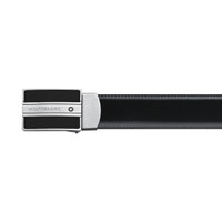 Rectangular mat palladium-finish buckle with Meisterstuck design, engraved Montblanc brand name and Montblanc emblem, 3 cm x 120 cm, reversible black & brown leather strap. Designed for a casual yet elegant look. Ident No. MB128136 Material MATERIAL Calf-skin leather STRAP Reversible black and brown cowhide leather BUCKLE MECHANISM Easy-to-open mechanism to adjust strap length SHAPE Rectangular COATING EMBLEM LOCATION Engraved Montblanc brand name and emblem COLOR Black | Brown Dimensions DIMENSIONS 47.24 × 1.18 × 0.20 inches FITTINGS / EMBLEM Emblems are manually centered, one by one, by our artisans. The emblem is centrally positioned, but the manual pressure operation with the machine may shift the emblem itself. This is a characteristic that does not compromise the aesthetic of the product and could not be accepted as complaint according to our policy.