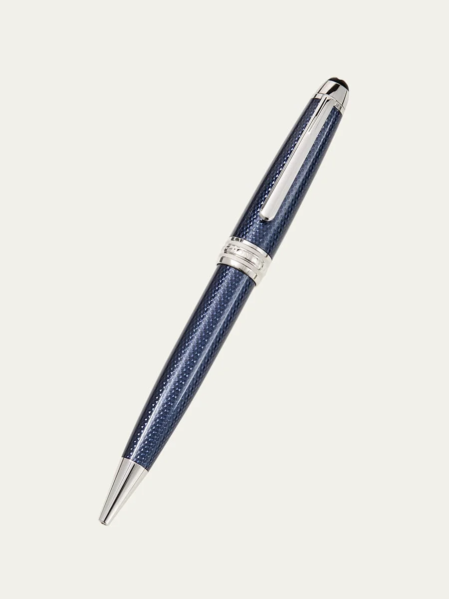 Montblanc pen from the Meisterstuck Collection. Platinumcoated hardware. Hexagonengraved blue lacquer. Ballpoint for precision writing. Made in Germany.