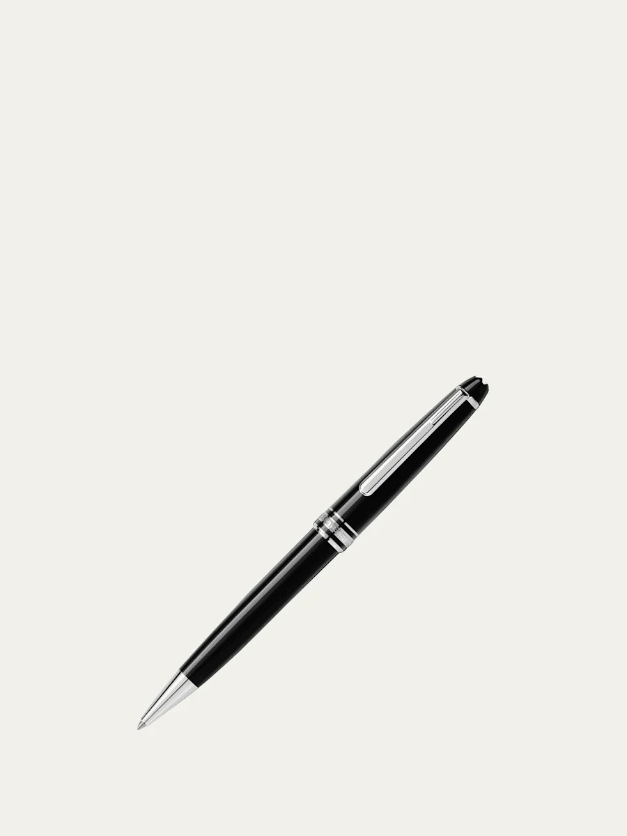 Montblanc pen with platinumcoated details. Deep black precious resin. Rollerball for precision writing. Made in Germany.