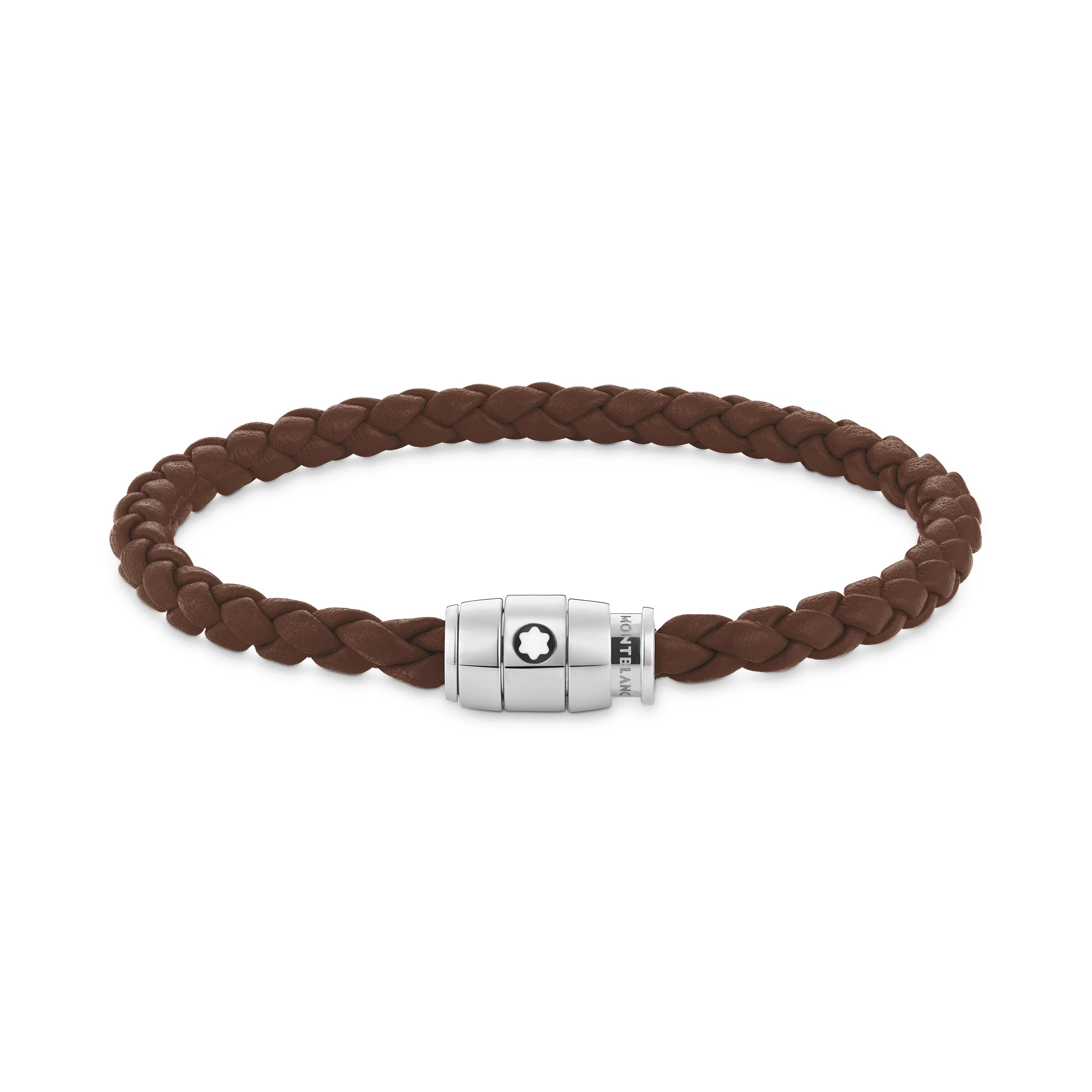 This piece of jewelry, crafted from soft leather, features a polished stainless steel clasp adorned with the Montblanc emblem. Ident No. MB136002 Material MATERIAL Steel PHYSICAL WEIGHT 12 g