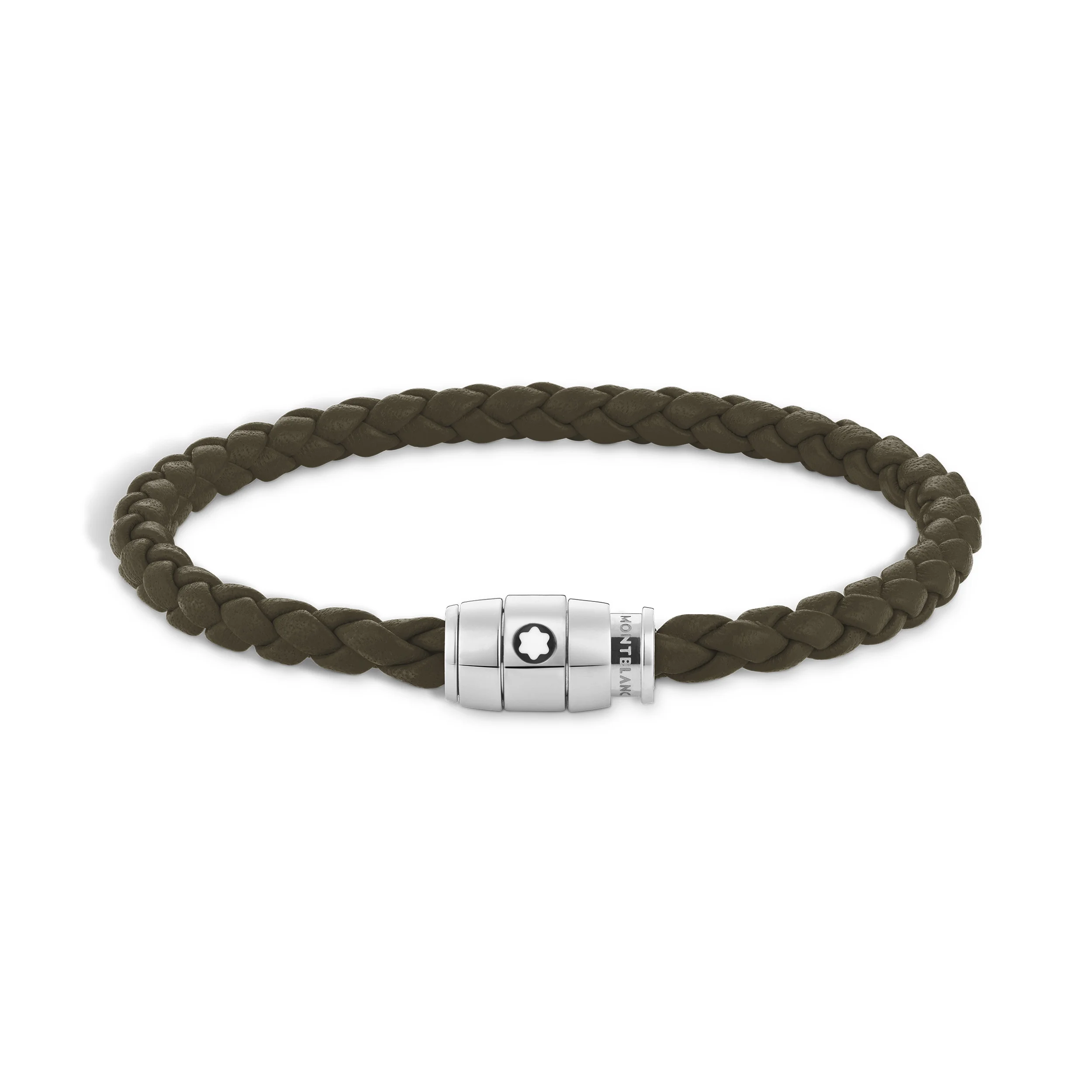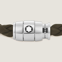 This piece of jewelry, crafted from soft leather, features a polished stainless steel clasp adorned with the Montblanc emblem. Ident No. MB136003 Material MATERIAL Calf-skin leather PHYSICAL WEIGHT 12 g