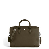 This elegant document case, crafted from luxurious grain leather in khaki, celebrates Montblanc’s connection to the culture of writing through nib-shaped details on the zip pullers and handles. Inside, it offers thoughtful organisation with a large open pocket, a zipped pocket, two additional open pockets, and two writing instrument loops. A leather removable strap and a satellite system provide versatile carrying options, making it the ideal companion for business travels. Ident No. MB220455 Material Material Leather Leather Full-grain bovine leather Colour khaki Lining Linen Closing System Metal zipper Dimensions Width 80 mm Length 375 mm Height 270 mm Physical Weight 1500 g