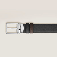 Discover subtle sophistication with this 30mm reversible leather belt, featuring the polished everyday pin buckle in a shiny palladium finish. One side of the belt strap is crafted from black sartorial embossed leather, offering a refined and textured finish, while the reverse showcases the same leather in a rich ebony hue. The sleek minimalist rectangular silhouette of the buckle, complemented by clean edges and a discreet Montblanc logo, makes this belt a versatile accessory. Ident No. MB222359
