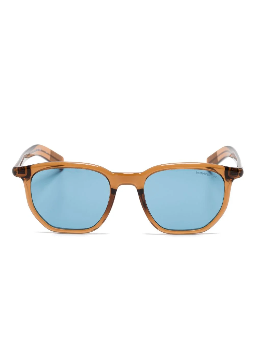 geometric-frame sunglasses Highlights - Chocolate brown - Translucent design - Geometric frame - Blue tinted lenses - Uv-protective lenses - Logo lens decal - Straight arms - Logo plaque at the arm - Curved tips - These glasses come with a protective case. Made in Italy Composition Acetate 100% SIZE & FIT Measurement Arm Length 5.7 in(14.5 cm) Bridge Width 0.74 in(1.9 cm) Lens Diameter 1.96 in(5 cm) Total Width 5.51 in(14 cm)