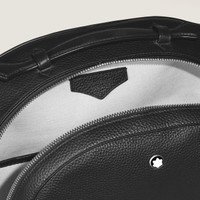This luxurious leather backpack is your refined companion for daily commutes or short business trips. Inspired by Montblanc's heritage in writing, it features stitching and zip pullers that echo the iconic nib design, while the granular texture of the leather adds even further sofistication. The backpack offers versatile carrying options with comfortable adjustable shoulder straps and a satellite system for easy attachment to larger luggage. Its spacious main compartment hosts essentials and features a padded compartment suitable for laptops up to 13 , an open pocket and a pen loop for seamless organisation of smaller items. Ident No. MB199459 Material MATERIAL Calf-skin leather STRAP 2 adjustable shoulder straps COLOR Black Dimensions DIMENSIONS 12.99 × 8.66 × 16.54 inches FITTINGS / EMBLEM Emblems are manually centered, one by one, by our artisans. The emblem is centrally positioned, but the manual pressure operation with the machine may shift the emblem itself. This is a characteristic that does not compromise the aesthetic of the product and could not be accepted as complaint according to our policy.