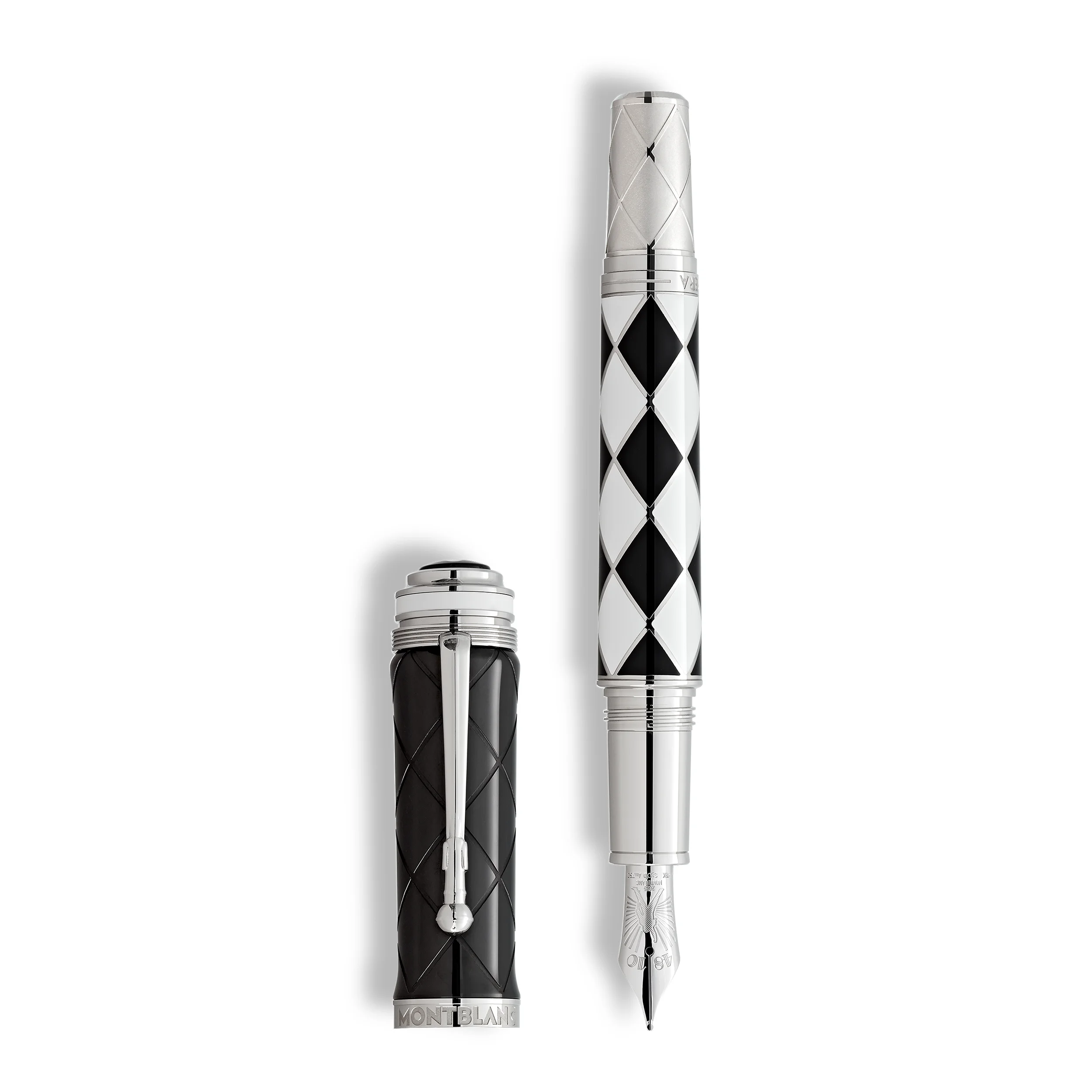 In the rich history of rock music few names have shone out as consistently as that of Queen. With a career spanning over five decades, the band is one of the world’s most successful of all time. During this period, Queen came to embody the power of musical creativity and most of their songs topped the charts for weeks on end. They created something like their own musical universe, made up of a combination of hard rock, glam rock, pop, funk and opera, shattering the boundaries between the genres. Montblanc dedicates its Great Characters Homage to Queen Limited Edition 1975 to these icons of rock music, inspired by the album A Night At The Opera. Black and white. No other colour combination describes such stark contrast and no other could better symbolise the extent of Queen’s musical universe. For a time, The Black and the White was even pencilled in as the title of their second studio album and was the motto for Mercury’s spectacular birthday party eleven years later. The Limited Edition 1975 also appears in this contrasting guise. The band’s fourth studio album, however, surpassed everything which had gone before and is considered the most elaborately produced album of the 20th century. The four artists who performed on it have gone down in history: Freddy Mercury, the charismatic front man with a vocal range spanning several octaves and featuring a rich vibrato; Brian May, the virtuoso guitarist and his unmistakable electric guitar sound; John Deacon, the highly creative bass player; and Roger Taylor, the rhythmic heart of the band. As a nod to these four exceptional musicians, their stylised portraits are immortalised on the black cap of the writing instrument, based on the artwork of the iconic Queen II and Hot Space covers. The album A Night at the Opera – and in particular its centrepiece Bohemian Rhapsody – exemplifies Freddie Mercury’s dream of creating a record of epic proportions. The single’s six-minute, extravagant arrangement combines piano ballads, opera and rock, interspersed with layer upon layer of operatic, cascading vocals and quirky references to such characters as Galileo or Scaramouche, a figure from the Commedia dell’Arte. Mercury himself, known for his flamboyant stage costumes, would often slip into the guise of another Commedia dell’Arte figure, the Harlequin. His famous tight-fitting unitard with its black-and-white diamond pattern underlined his unconventional stage persona and inspired the rhomboidal design of the barrel. The edition also honours Brian May and his amazing guitar playing, which was so pivotal to the sound of the album, by giving the platinum-coated cone its distinctive look. This is reminiscent of the volume and tone control knobs on May’s famous electric guitar. The cone ring is embossed with the name of the album: A Night at the Opera. The year of its release, 1975, inspired the decision to limit the edition to 1975 fountain pens and 1975 rollerballs. The crown worn by Mercury during the closing rendition of God Save The Queen was the inspiration behind the silhouette of the cap top of the Limited Edition and is at the same time a metaphor for the majestic character of the band and its musical legacy. The platinum-coated clip is designed to resemble a microphone stand in reference to one of the hallmarks of Freddie Mercury’s live performances. Ident No. MB131968 Features Clip Description Clip in special shape, made from metal, platinum-coated Barrel Description Barrel made of metal, platinum-coated with lacquer inlays Cap Description Cap made from black pvd with special decoration Size M Colour Black | White Dimensions Physical Weight 86.2 g Dimensions 144.8 mm * 17.8 mm
