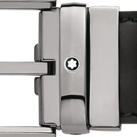 Horseshoe shiny ruthenium-finish buckle. Self-adjustable, 3.5 cm x 120 cm, with black leather strap and pricker stitching. Conceived for a classic look with a twist. Ident No. MB128770 Material MATERIAL Cowhide STRAP Black cowhide leather with pricker stitching BUCKLE MECHANISM Easy-to-open mechanism to adjust strap length SHAPE Horseshoe COATING EMBLEM LOCATION Montblanc emblem on the metal loop COLOR Black Dimensions DIMENSIONS 47.24 × 1.38 × 0.20 inches FITTINGS / EMBLEM Emblems are manually centered, one by one, by our artisans. The emblem is centrally positioned, but the manual pressure operation with the machine may shift the emblem itself. This is a characteristic that does not compromise the aesthetic of the product and could not be accepted as complaint according to our policy.