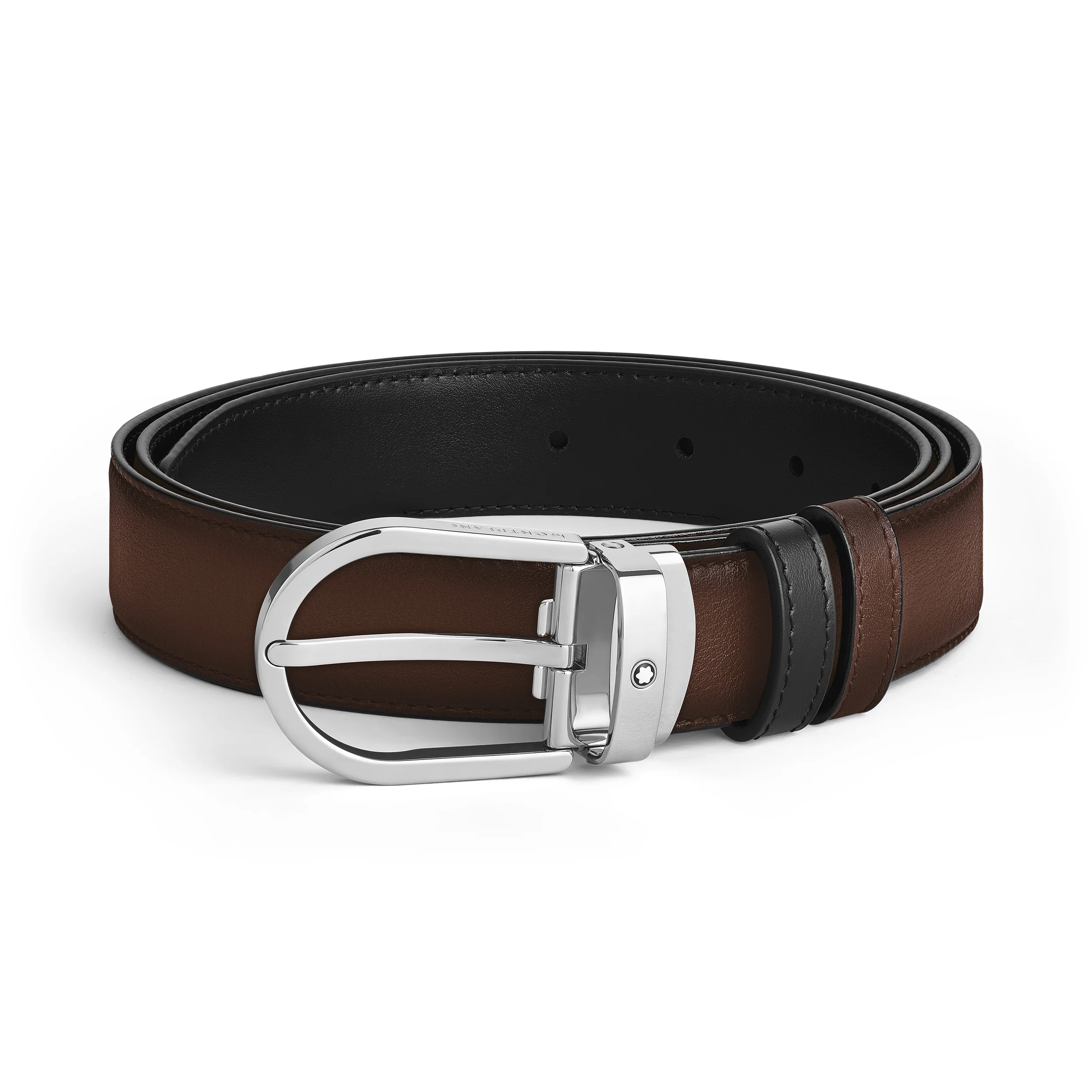 HORSESHOE BUCKLE BROWN/BLACK 30MM REVERSIBLE LEATHER STRAP