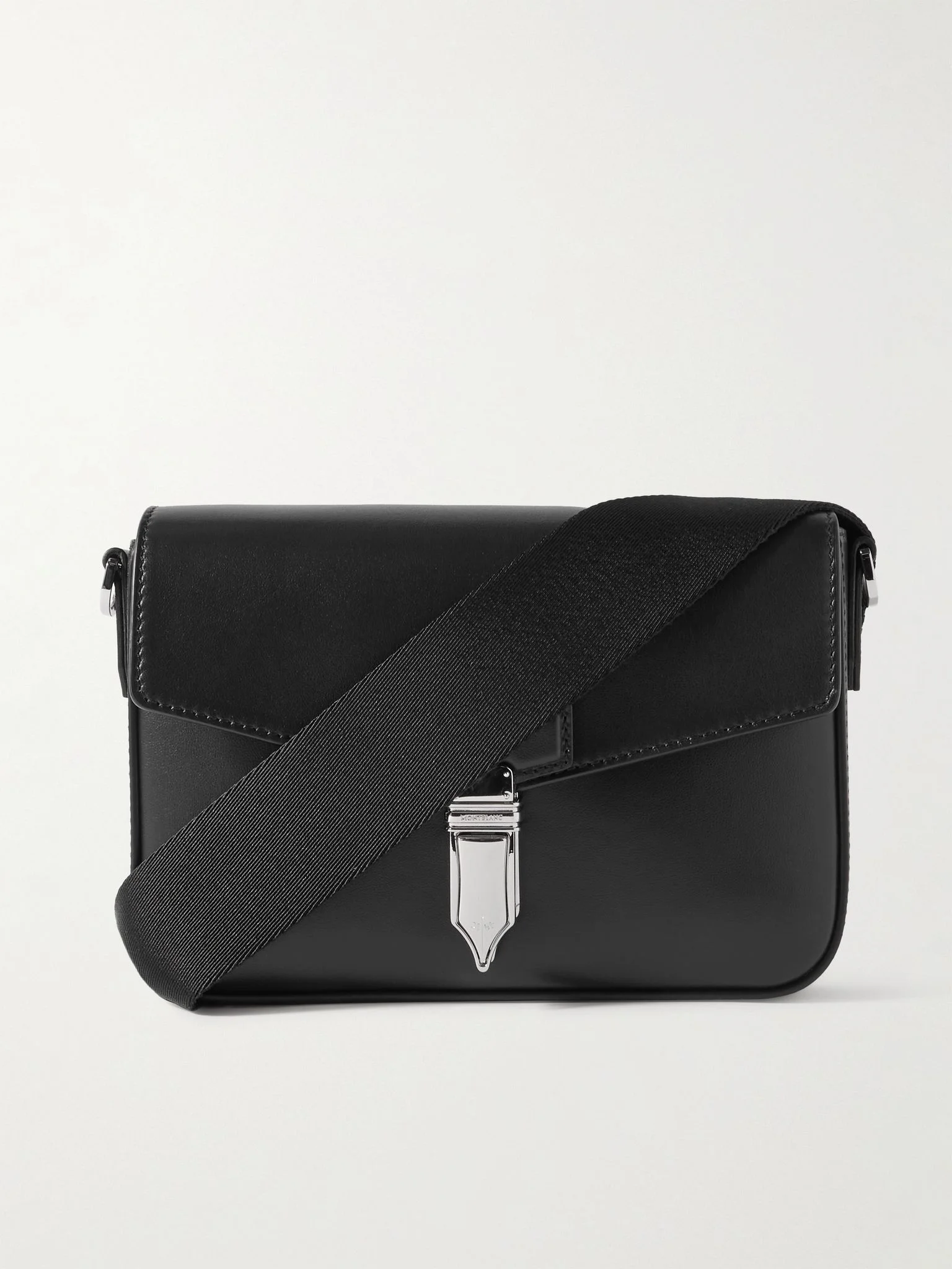 Montblanc describes this messenger bag as a '"sleek sidekick for daily exploration". Made from soft leather, it's detailed with polished hardware inspired by the art of writing – see how the push clasp is shaped like a pen nib. Set on an adjustable webbing strap, it's sized to carry your phone, keys, cardholder and a diary. Details & Care - Black leather (Calf) - Detachable adjustable shoulder strap - Internal slip pocket - Push clasp fastening - Leather lining - Comes with dust bag