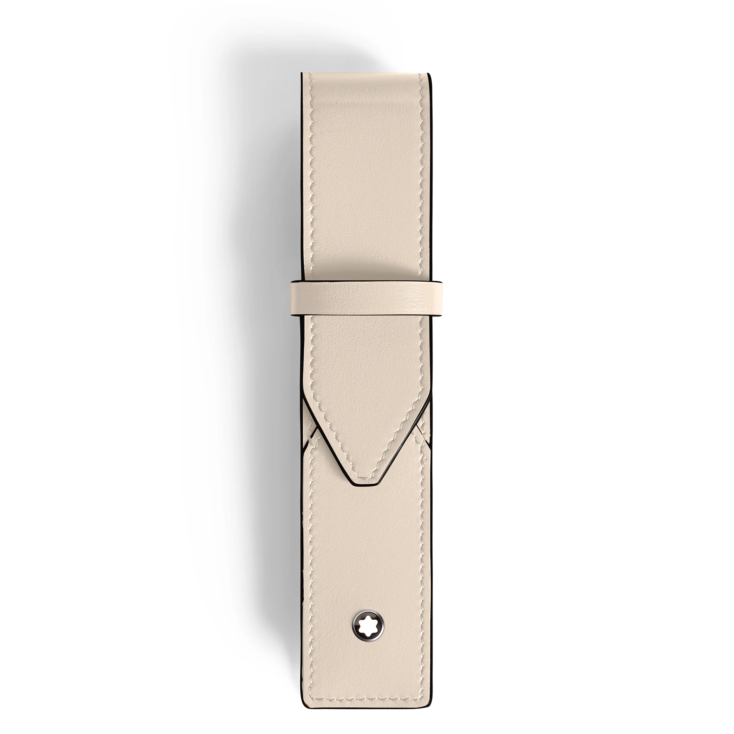 Handcrafted from smooth leather in cloudy beige, the Meisterstuck one-pen pouch is a stylish way to stow your writing instrument safely. Designed to house one pen the size of the Montblanc Meisterstuck Classique or LeGrand, the sturdy pouch fits comfortably into your pocket. Ident No. MB199330 Material MATERIAL Calf-skin leather COLOR Cloudy Beige LINING Fabric Dimensions DIMENSIONS 1.18 × 0.71 × 6.30 inches FITTINGS / EMBLEM Emblems are manually centered, one by one, by our artisans. The emblem is centrally positioned, but the manual pressure operation with the machine may shift the emblem itself. This is a characteristic that does not compromise the aesthetic of the product and could not be accepted as complaint according to our policy.