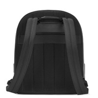 A practical yet sophisticated companion for professionals on the go, this small backpack comes with ample room for technical devices, A4 documents and other business essentials, including dedicated pockets for two writing instruments. Crafted in luxurious leather, the bag is designed with a clean-lined silhouette for a contemporary allure. Ident No. MB130914 Material MATERIAL Cowhide STRAP 2 adjustable shoulder straps COLOR Black LINING Cotton and polyamide lining CLOSURE Zipper Dimensions DIMENSIONS 12.60 × 5.12 × 14.96 inches FITTINGS / EMBLEM Emblems are manually centered, one by one, by our artisans. The emblem is centrally positioned, but the manual pressure operation with the machine may shift the emblem itself. This is a characteristic that does not compromise the aesthetic of the product and could not be accepted as complaint according to our policy.