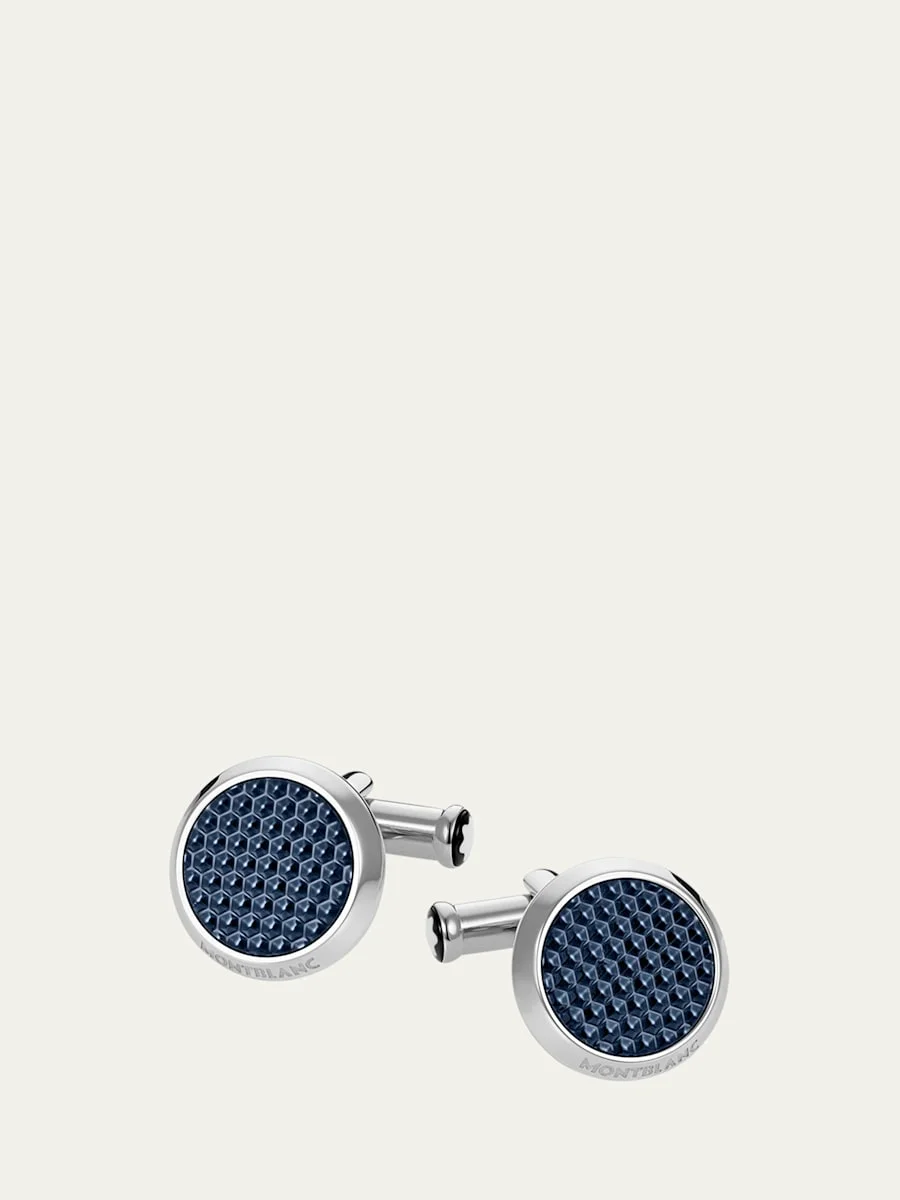 Montblanc round cuff links. Hexagonal lacquered inlay. Stainless steel. Bullet backs. Online Inquiries: BGS21_N5VYL| Store Inquiries: #2884651
