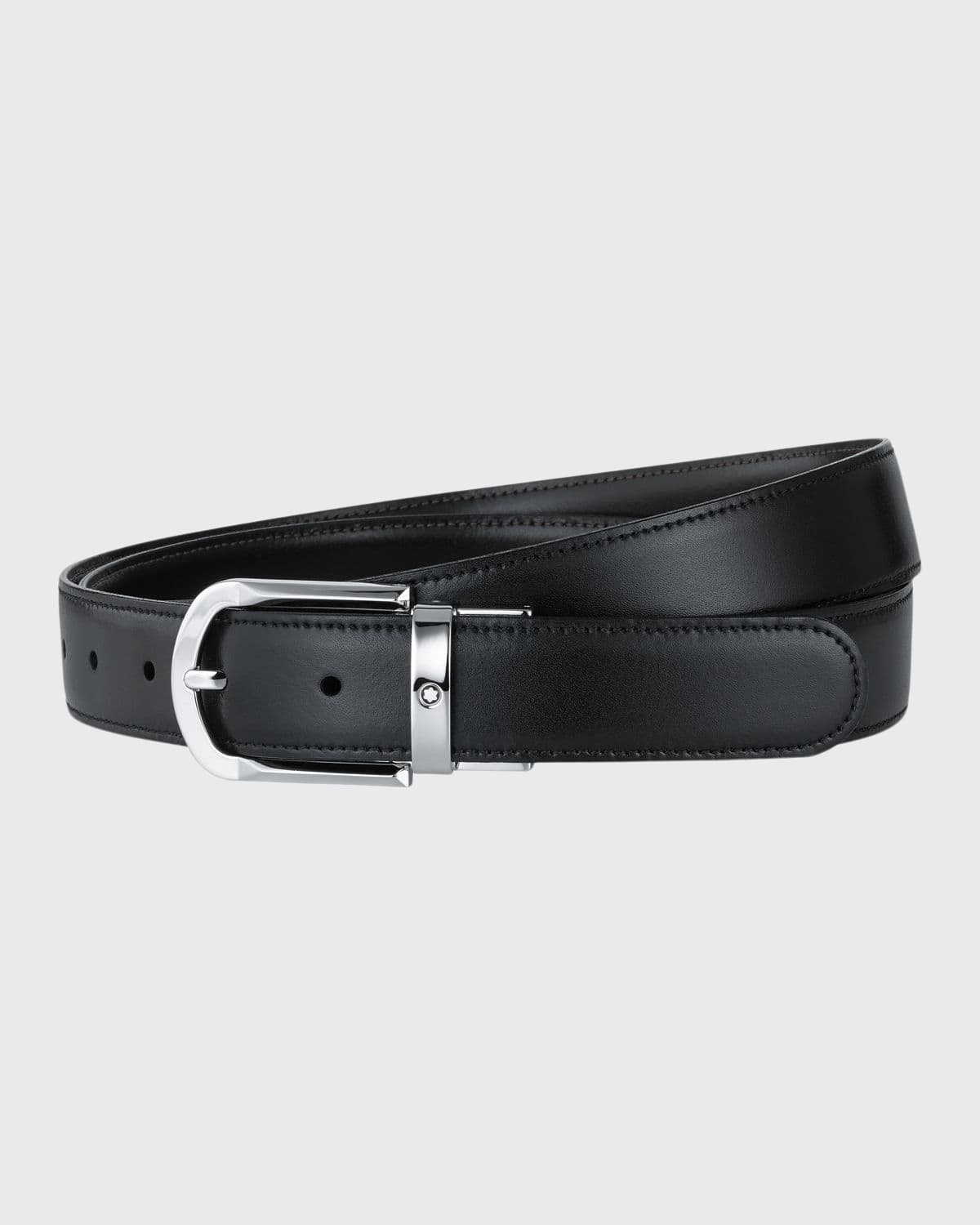 Men's Horseshoe-Buckle Reversible Leather Belt
