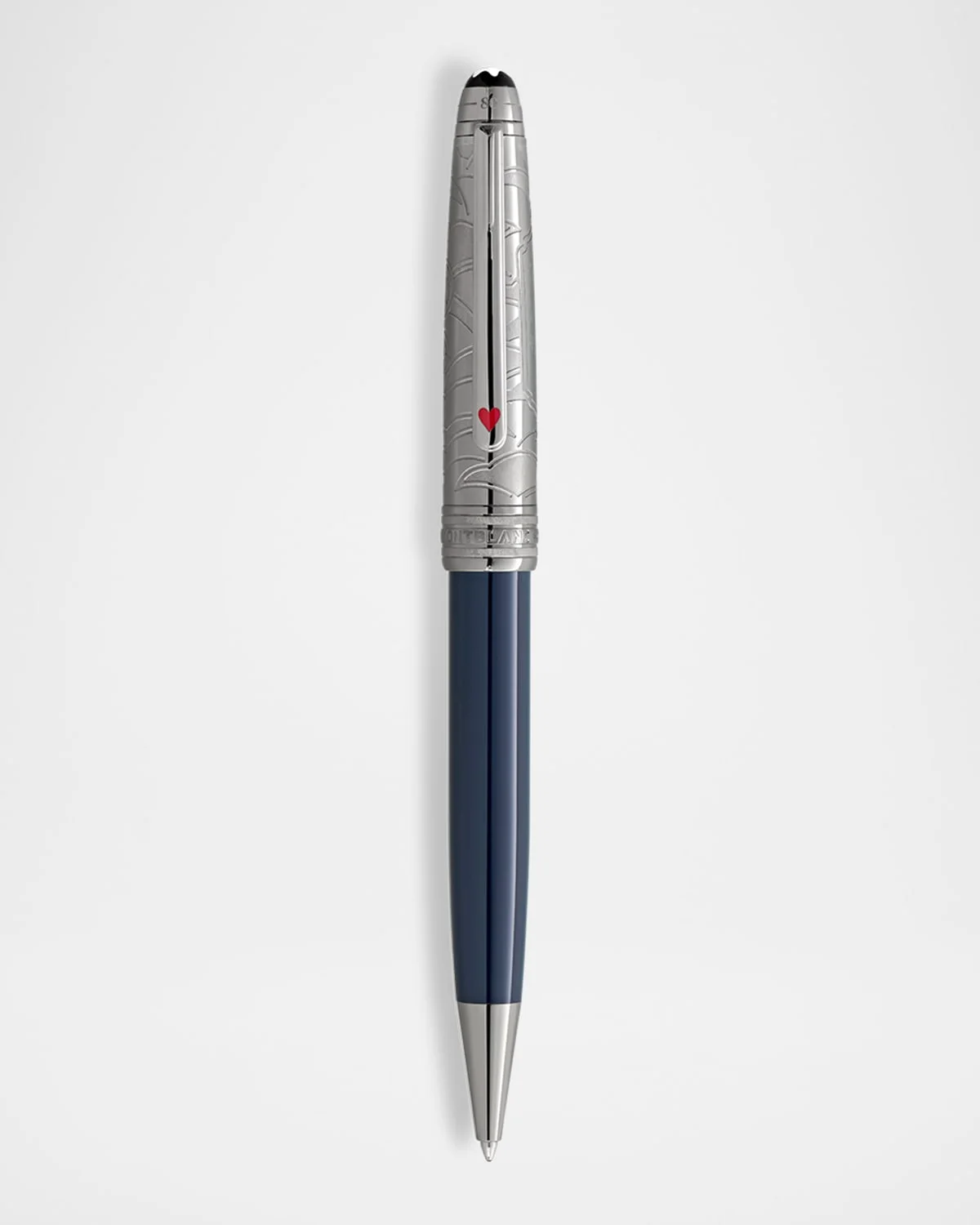 Montblanc doue ballpoint pen from the Meisterstuck around the world in 80 days collection Inspired by Jules Verne's renowned adventure novel Polished dark blue precious lacquer Safety chain pattern on the cone Item Weight (Lbs.): 0.1 Spot clean Made in Germany