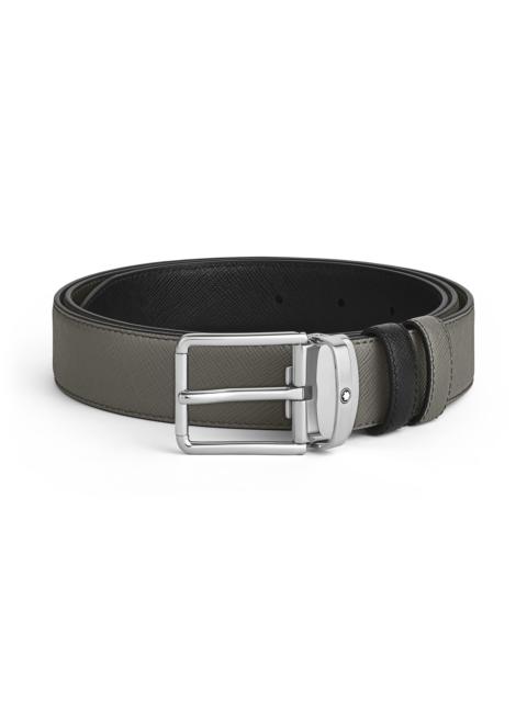 Crafted for the modern individual, this 30mm reversible Saffiano leather belt features the new shiny palladium passe-partout buckle with clean, minimalist lines, designed for effortless casual wear. With one side in classic black and the other in medium grey, it offers versatility without ever compromising on style. Ident No. MB220026
