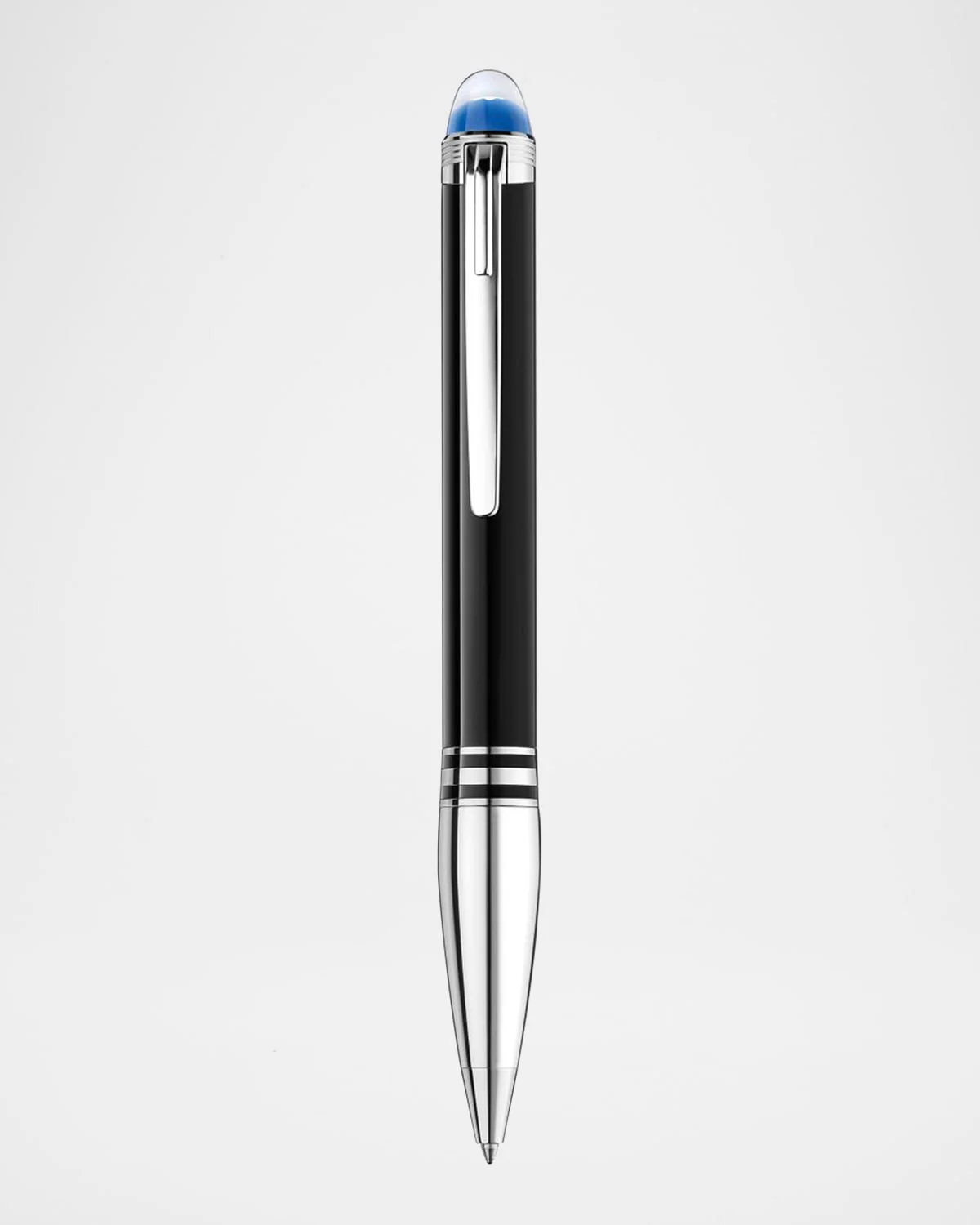Montblanc ballpoint pen from the StarWalker collection, inspired by the adventures of space exploration. Floating emblem in transparent cap is reminiscent of the Earth emerging above the lunar horizon. Black precious resin barrel. Platinumcoated cap. Weight, 44.12 grams. Made in Germany.
