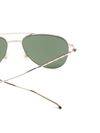 metallic pilot-frame sunglasses Highlights - Gold-tone - Metal - Metallic finish - Pilot frame - Tinted lenses - Uv-protective lenses - Logo plaque at the arm - Straight arms - Curved tips - These glasses come with a protective case. Made in Italy Composition Metal (Other) 100% SIZE & FIT Measurement Arm Length 5.7 in(14.5 cm) Bridge Width 0.66 in(1.7 cm) Lens Diameter 2.28 in(5.8 cm) Total Width 5.51 in(14 cm)