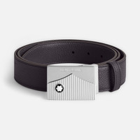 Take your sartorial choices to new heights with this luxury belt featuring a 3.5 x 120 cm reversible strap in black and brown grainy leather paired with a distinctive plate lock with a mountain shape design, large Montblanc emblem and a vintage palladium finishing. Ident No. MB199108 Material MATERIAL Cowhide COLOR Black | Brown Dimensions DIMENSIONS 47.24 × 0.20 × 1.38 inches