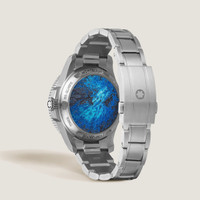 After having strived for the greatest heights, Montblanc explores the marine universe at 4810 meters below sea level with the Montblanc Iced Sea 0 Oxygen Deep 4810. The glacier pattern dial is inspired by the Mer de Glace - Sea of Ice - the main glacier of the Mont-Blanc Massif. Its texture was achieved using an almost-forgotten ancestral technique called gratte-boise. Housed in a 43 mm titanium case totally devoid of oxygen with a shield protecting the screw-down crown, this diving watch comes with a case back adorned with a 3D engraving of the view divers see when diving underneath the ice. The timepiece is powered by Montblanc’s Manufacture, COSC-certified, automatic MB 29.29 movement, with approx. five days of power reserve and conforms to the ISO 6425 norm for scuba diving. It is water-resistant to 4810 meters. Ident No. MB135634
