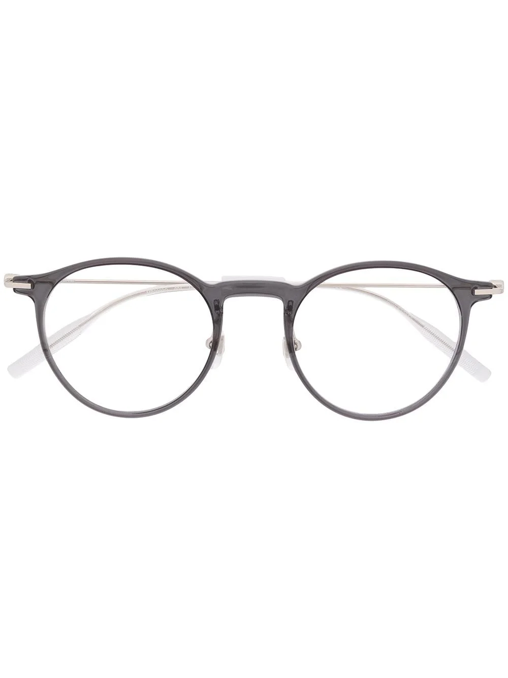 polished round-frame glasses Siler-tone and grey acetate and metal polished round-frame glasses from Montblanc featuring a polished finish, round frames, a straight bridge and straight arms with curved tips. This item comes with a protective case. Made in Italy Composition Acetate 80%, Metal 20% SIZE & FIT Measurement Arm Length 5.7 in(14.5 cm) Bridge Width 0.82 in(2.1 cm) Lens Diameter 1.88 in(4.8 cm) Total Width 5.51 in(14 cm)