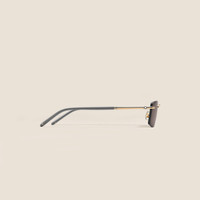 These rimless sunglasses in a squared style have a gold-coloured metal frame and brown lenses. The tubular temple inspired by the Meisterstuck writing instruments is enriched with a 3 rings detail. The Montblanc logo is lasered on the left lens and a black enamel detail is encapsulated on the end tips. Ident No. MB136916