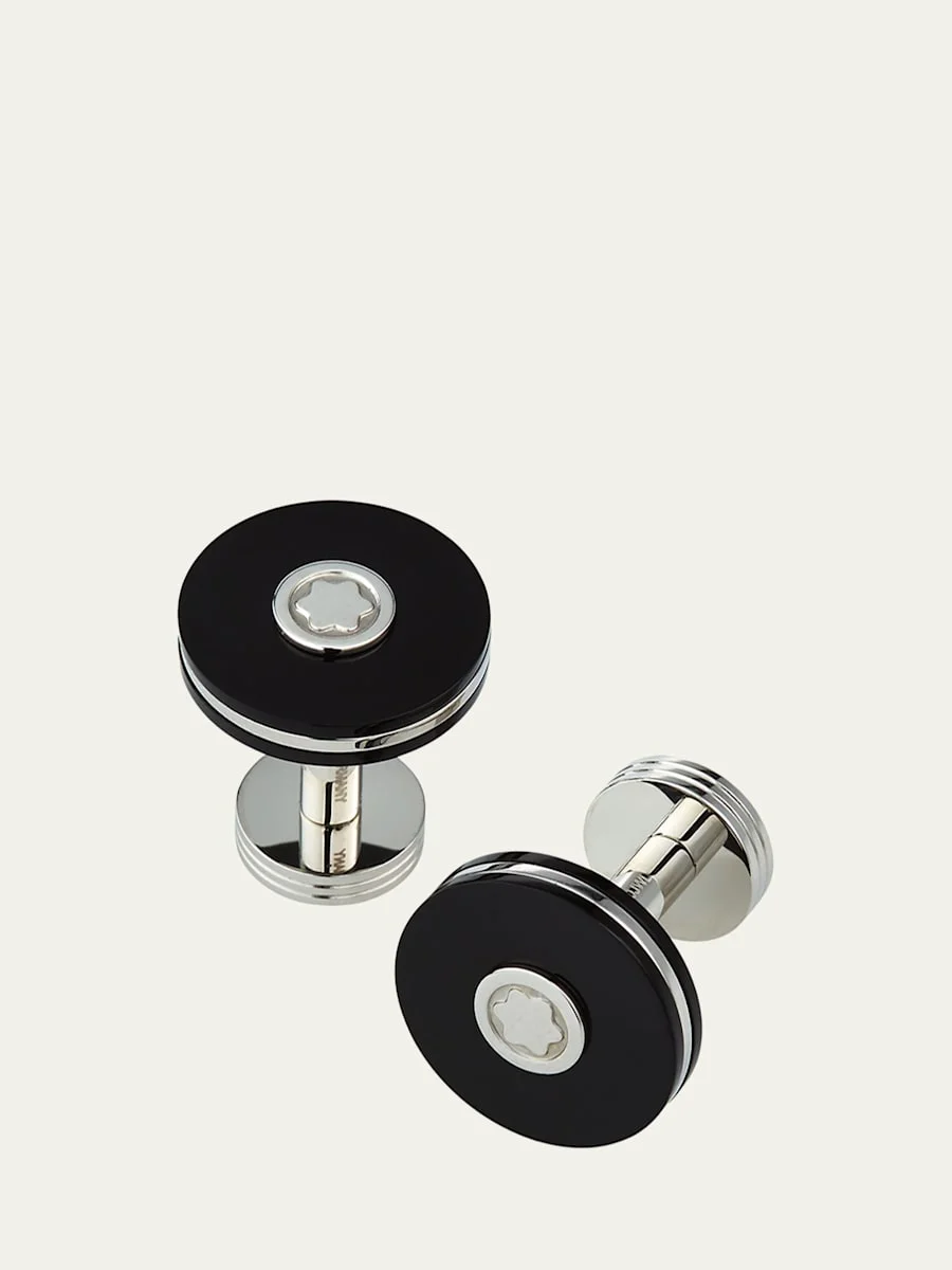 Montblanc round cuff links. Stainless steel with precious resin top. Approx. 0.4" round. Made in Germany.