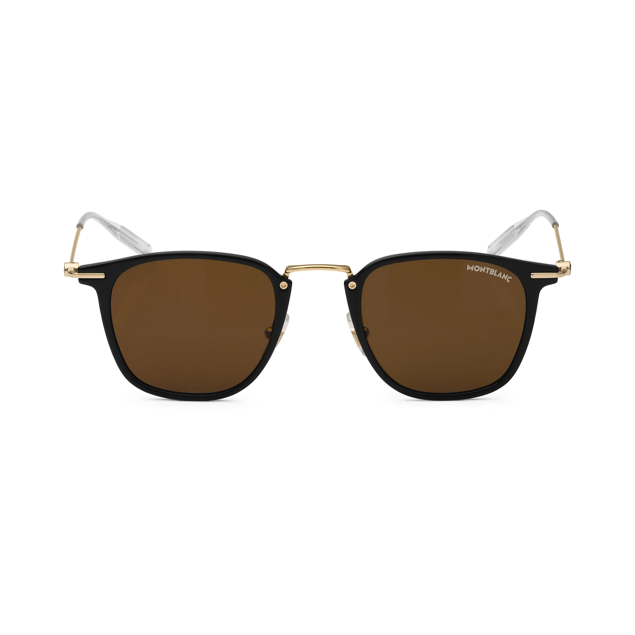 These lightweight black sunglasses with an injection-molded gold-colored frame are characterized by their round shape. The brown lenses provide a contemporary look and feel. The Montblanc logo is lasered onto the left lens and the anti-slip pattern is lasered onto the internal side of the temple tips to increase comfort. These lightweight black sunglasses with an injection-molded gold-colored frame are characterized by their round shape. The brown lenses provide a contemporary look and feel. The Montblanc logo is lasered onto the left lens and the anti-slip pattern is lasered onto the internal side of the temple tips to increase comfort. Ident No. MB133063