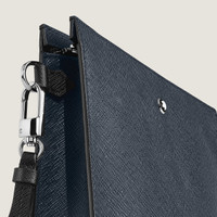 Carry your daily essentials in style with this sophisticated clutch. Crafted from embossed Sartorial leather in a refined two-tone combination of classy blue and black, it features a spacious main compartment with an additional open pocket for convenience. Versatile and elegant, it can be held by hand, tucked under the arm, or worn around the wrist with its detachable handle. Ident No. MB220428 Material Material Leather Leather Saffiano printed full-grain bovine leather Colour Tweed Blue Lining Cotton and polyamide lining Closing System Metal zipper Dimensions Width 45 mm Length 240 mm Height 200 mm Physical Weight 300 g