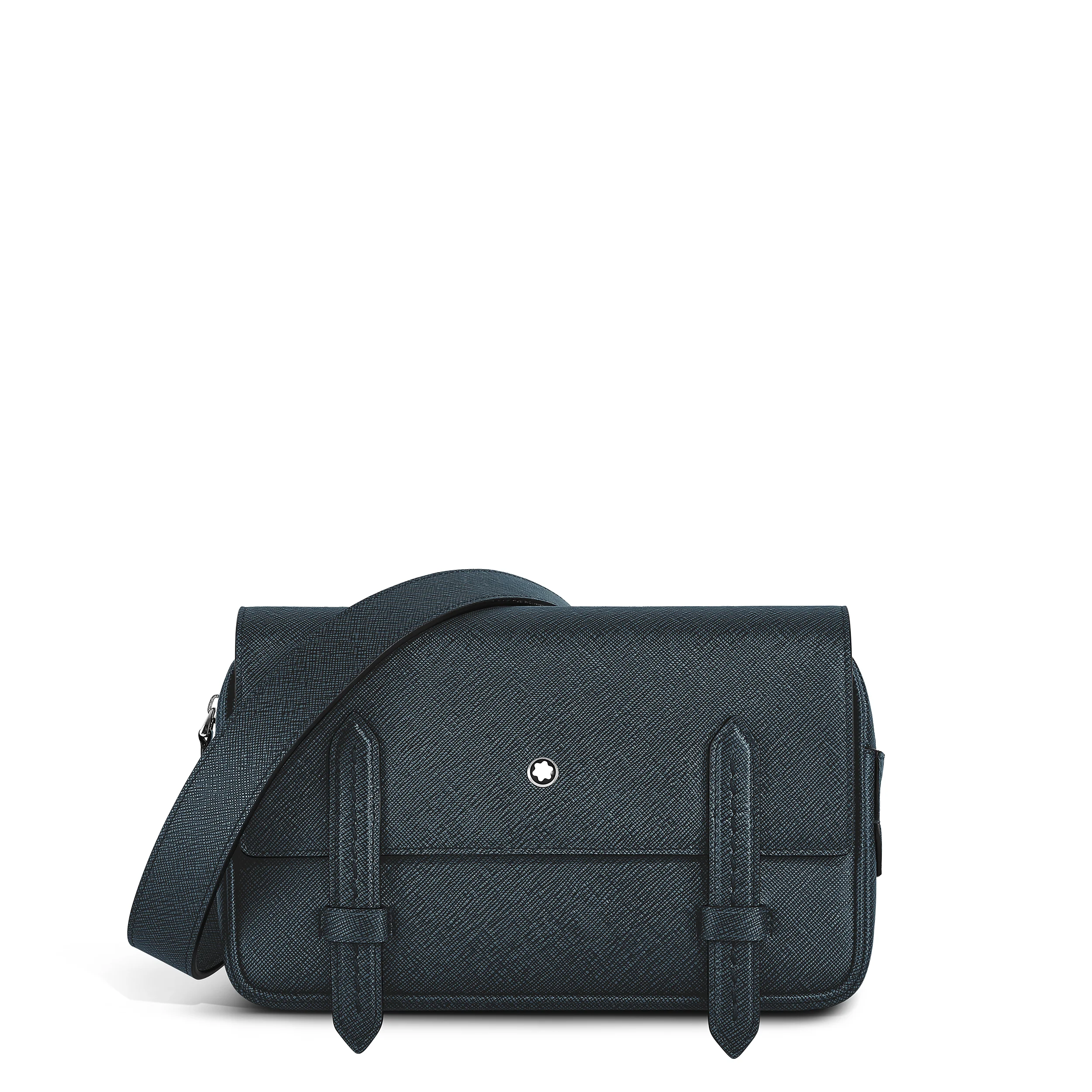 This crossbody bag combines minimalism and sophistication, making it a great fit for both casual and formal settings. Crafted from two-tone embossed Sartorial leather in black and blue, its front flap is adorned with a Montblanc emblem and two vertical straps. The spacious main compartment provides ample room for daily necessities, while a zipped pocket securely holds smaller essentials. Please note that this product contains magnets. Before using it, please consult the magnet section in the Service Guide leaflet accompanying the product or the Customer Service section on the Montblanc website. If you have any concerns, please consult your health care professional. Ident No. MB220423 Material Material Leather Leather Saffiano printed full-grain bovine leather Colour Tweed Blue Lining Cotton and polyamide lining Closing System Metal Zip and magnet Dimensions Width 70 mm Length 240 mm Height 180 mm Physical Weight 500 g