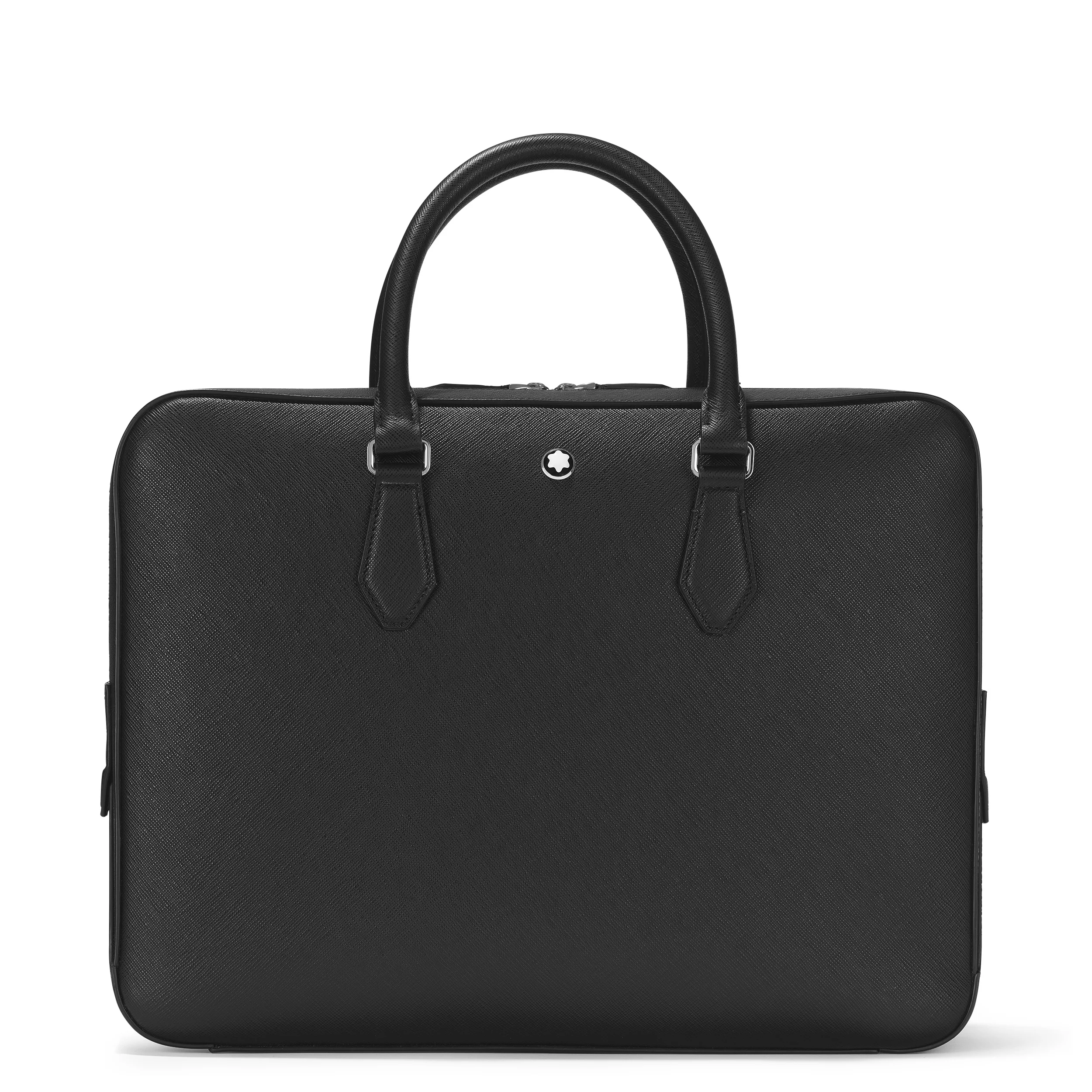 The definitive companion for business professionals, this sophisticated document case keeps important files safe in style while offering plenty of room for other belongings. Crafted in Saffiano-printed leather and featuring two zipped compartments, the case’s modular design allows for seamless personalization with smaller bags from the collection. The finishing details pay a direct tribute to the world of writing. Ident No. MB130270 Material MATERIAL Calf-skin leather LEATHER Saffiano printed full-grain bovine leather STRAP Adjustable and detachable shoulder strap COLOR Black LINING Cotton and polyamide lining CLOSURE Zipper Dimensions DIMENSIONS 15.35 × 3.94 × 11.81 inches FITTINGS / EMBLEM Emblems are manually centered, one by one, by our artisans. The emblem is centrally positioned, but the manual pressure operation with the machine may shift the emblem itself. This is a characteristic that does not compromise the aesthetic of the product and could not be accepted as complaint according to our policy.