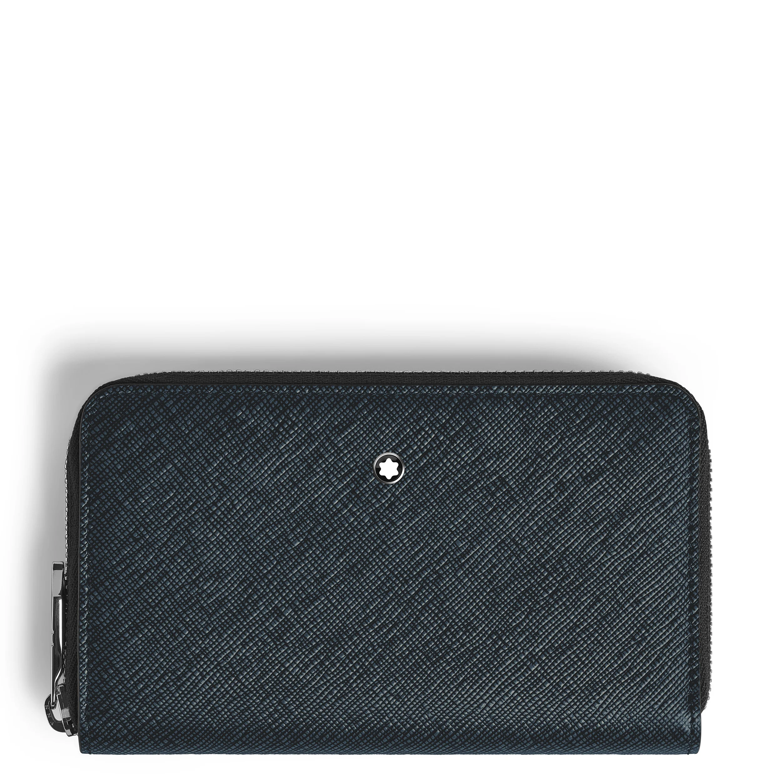 This functional zip-around wallet combines timeless style with practical functionality. Crafted from embossed sartorial leather in elegant combination of blue and black, it features a distinctive metal zip puller shaped like a nib, paying homage to Montblanc’s writing heritage. Inside, the wallet offers 12 credit card slots, a secure zipped coin case, and three additional pockets for receipts or other essentials. Ident No. MB220362 Material Material Leather Physical Weight 150 g Colour Tweed Blue Features Dimensions Width 20 mm Length 150 mm Height 90 mm Physical Weight 150 g