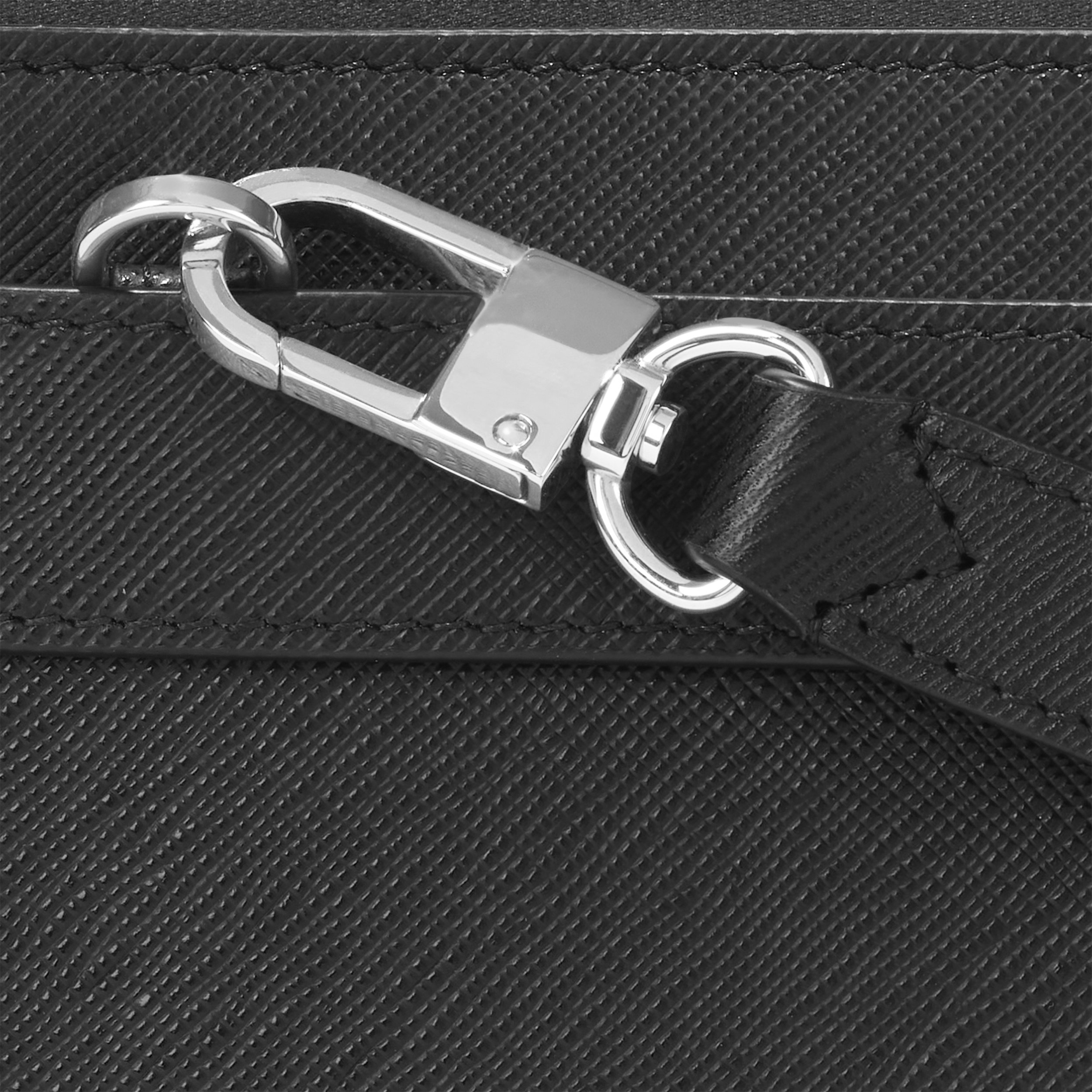 Smart, elegant and compact, the modular design of this mini bag allows you to customize how you use and wear it. The leather band attached to the back side allows its attachment to document cases and totes. Alternatively, it can be carried as a cross body. The zipped front compartment offers extra space to store essentials. Ident No. MB130306 Material MATERIAL Calf-skin leather LEATHER Saffiano printed full-grain bovine leather COLOR Black LINING Cotton and polyamide lining CLOSURE Zipper Dimensions DIMENSIONS 9.45 × 1.38 × 5.51 inches FITTINGS / EMBLEM Emblems are manually centered, one by one, by our artisans. The emblem is centrally positioned, but the manual pressure operation with the machine may shift the emblem itself. This is a characteristic that does not compromise the aesthetic of the product and could not be accepted as complaint according to our policy.