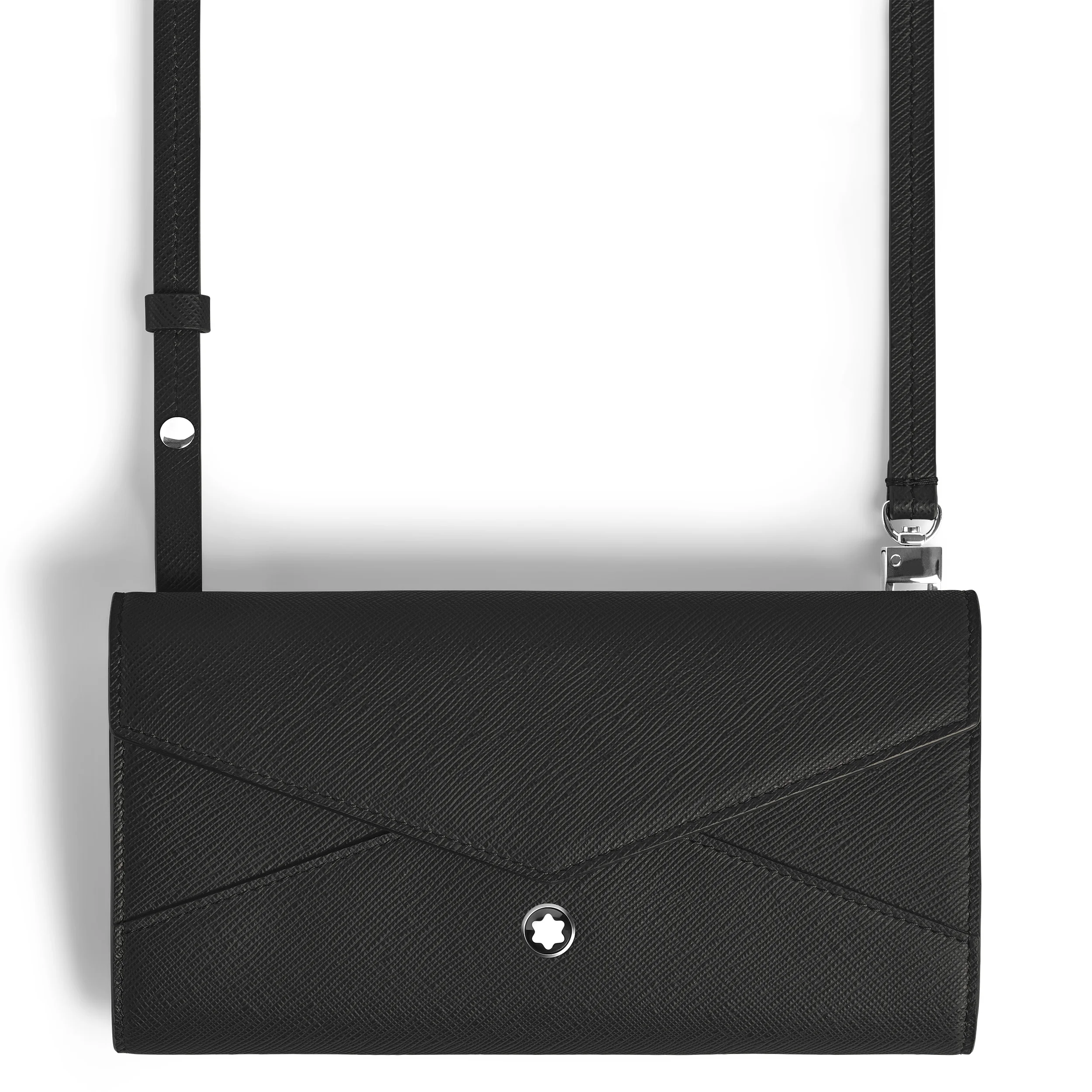 Inspired by classic envelope silhouettes, this continental wallet is a sophisticated companion for daily use. Crafted from embossed black sartorial leather, it features a zipped pocket to secure coins and keys, 12 credit card slots, and two compartments for banknotes. Thanks to its detachable shoulder strap, the wallet can also be worn as a compact mini bag for day and night endeavours. Finished with the iconic Montblanc emblem, it blends timeless elegance with practical functionality. Ident No. MB220344 Material Material Leather Physical Weight 300 g Colour Black Features Dimensions Width 30 mm Length 195 mm Height 95 mm Physical Weight 300 g
