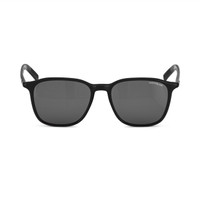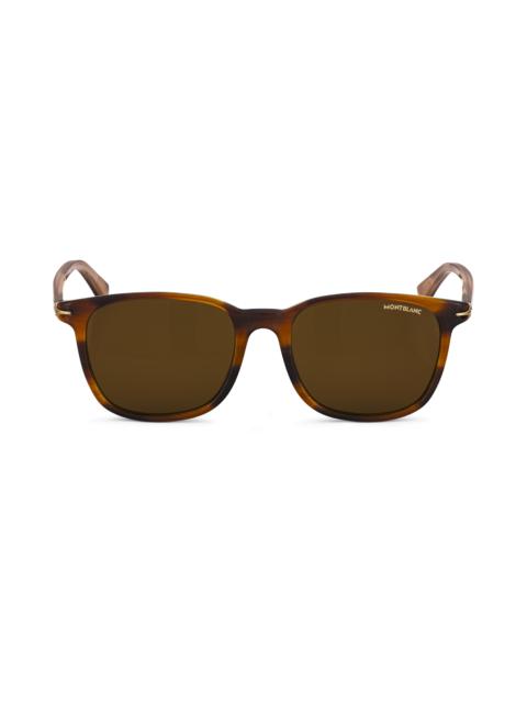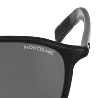 These square sunglasses feature a black acetate frame and gray lenses. The Montblanc Emblem is encapsulated in the temple design. The Montblanc logo is lasered on the left lens of the sunglasses and the anti-slip pattern is lasered on the internal side of the temple tips to increase comfort. Ident No. MB133440