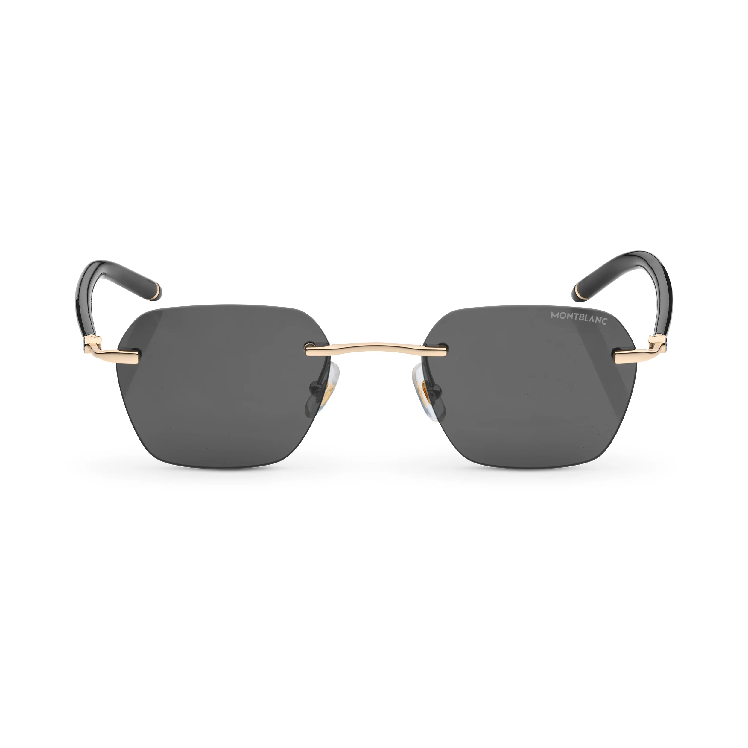 These light weight rimless sunglasses in a squared style have a gold colored metal frame and gray lenses. The tubular temple inspired by the Meisterstück writing instruments is enriched with a 3 rings detail. The Montblanc logo is lasered on the left lens and the snowcap logo is encapsulated on the temple. The anti-slip pattern is lasered onto the internal side of the temple tips to increase comfort. Ident No. MB131307