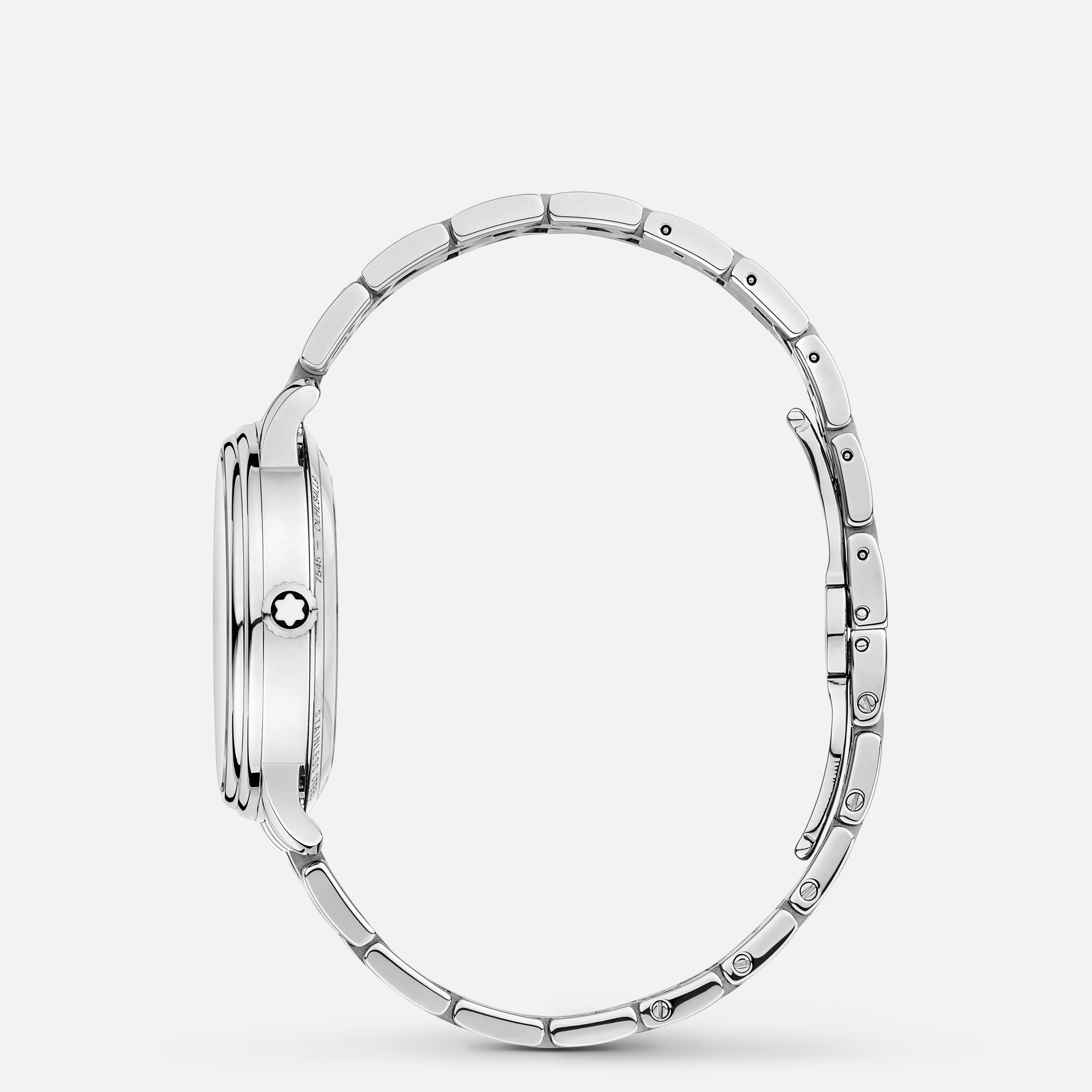 The Montblanc Tradition Collection boasts both a characteristic Montblanc design expression as well as classic watchmaking codes. The Montblanc Tradition Automatic Date comes in a 32 mm stainless steel case with straight horns and a double-shaped bezel. The timepiece features a blue sunray dial with rose gold-coated Roman numerals in relief and diamonds indexes. The traditional railway minuterie, the classic leaf-shaped hour and minute hands, the seconds hand and crown with Montblanc emblem and the stainless steel bracelet complete this contemporary elegant appearance. The date is displayed at 3 for very practical day-to-day use. Finally, the sapphire crystal on the case back opens on the automatic movement. Ident No. MB129643 Movement MOVEMENT TYPE Automatic, self-winding MOVEMENT CALIBER MB 24.17 NUMBER OF JEWELS 26 Jewels FLAT HAIRSPRING Complications COMPLICATIONS Date by disc Case CASE MATERIAL Stainless Steel DIAL Blue dial with rose gold-coated Roman numerals and diamonds indexes ANTI-SCRATCH CRYSTAL Yes CRYSTAL SHAPE Flat CRYSTAL DESCRIPTION Sapphire crystal case back CRYSTAL TYPE Sapphire CROWN Stainless steel with Montblanc emblem WATER RESISTANT 3 bar (30 m) bar CASE BACK MATERIAL Stainless steel case BRACELET COLOR Stainless Steel CASE DIAMETER 1.26 inches
