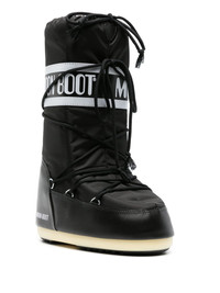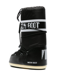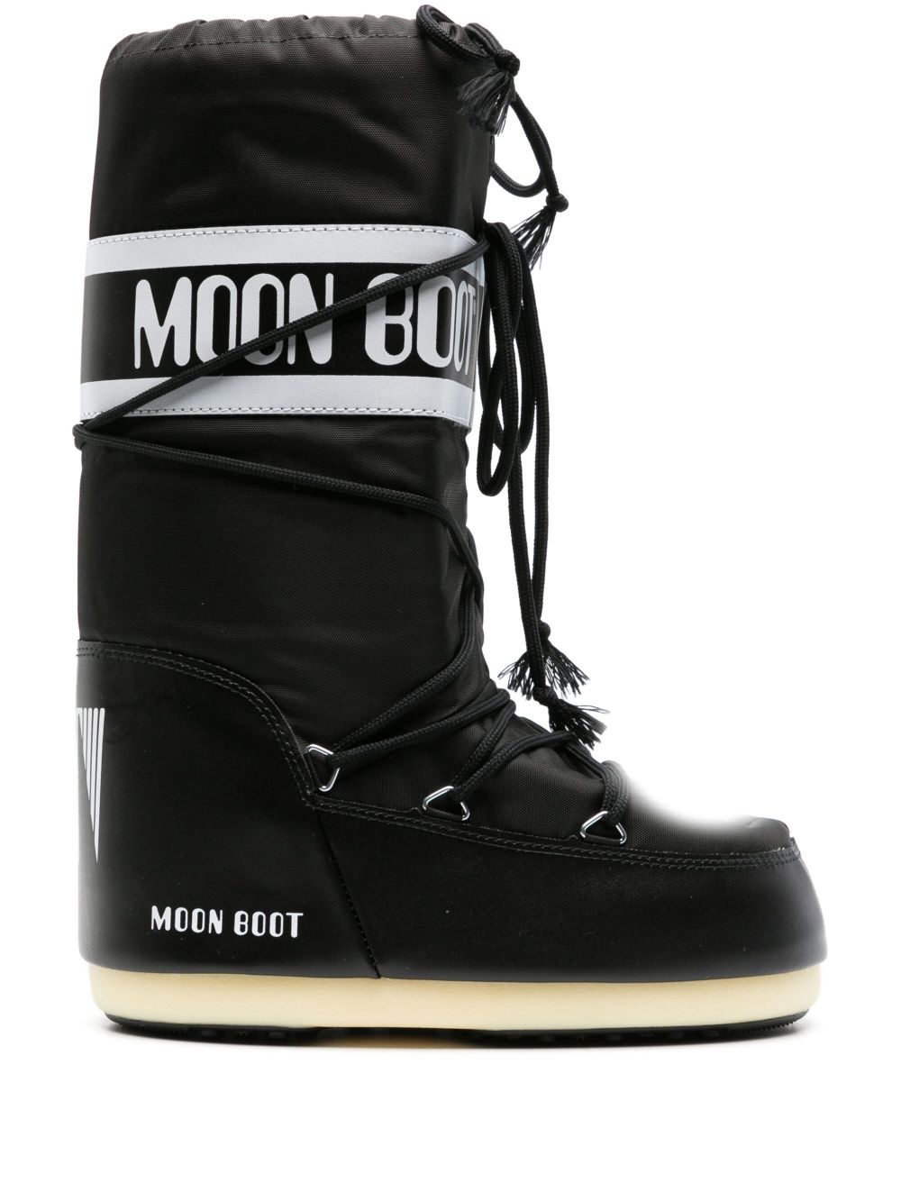 Icon padded boots The landing on the moon may have been one small step for man, but for Moon Boot it was a giant leap for footwear. The original Icon model is inspired by the 1969 landing of Neil Armstrong and resembles high-technology astronaut gear. Insulated and lightweight, these shoes are now the ultimate ski boots worldwide due to their unique and instantly recognizable ambidextrous design and features like the water-repellent finish and suction pads on the tread sole, that offer ground control. Highlights - Black/white - Water-repellent - Padded design - Panelled design - Logo print to the side - Logo print to the rear - Logo-print stripe detailing - Silver-tone hardware - Round toe - Front lace-up fastening - Top drawstring fastening - Foam lining - Thermoplastic mid sole - Flat rubber sole Imported Composition Outer: Polyurethane 100%, Nylon 100% Lining: Fabric 100% Sole: Rubber 99% SIZE & FIT Measurement HEIGHT 11.81 in(30 cm) Sole height 1.18 in(3 cm) CIRCUMFERENCE 14.17 in(36 cm) HEEL 1.96 in(5 cm)