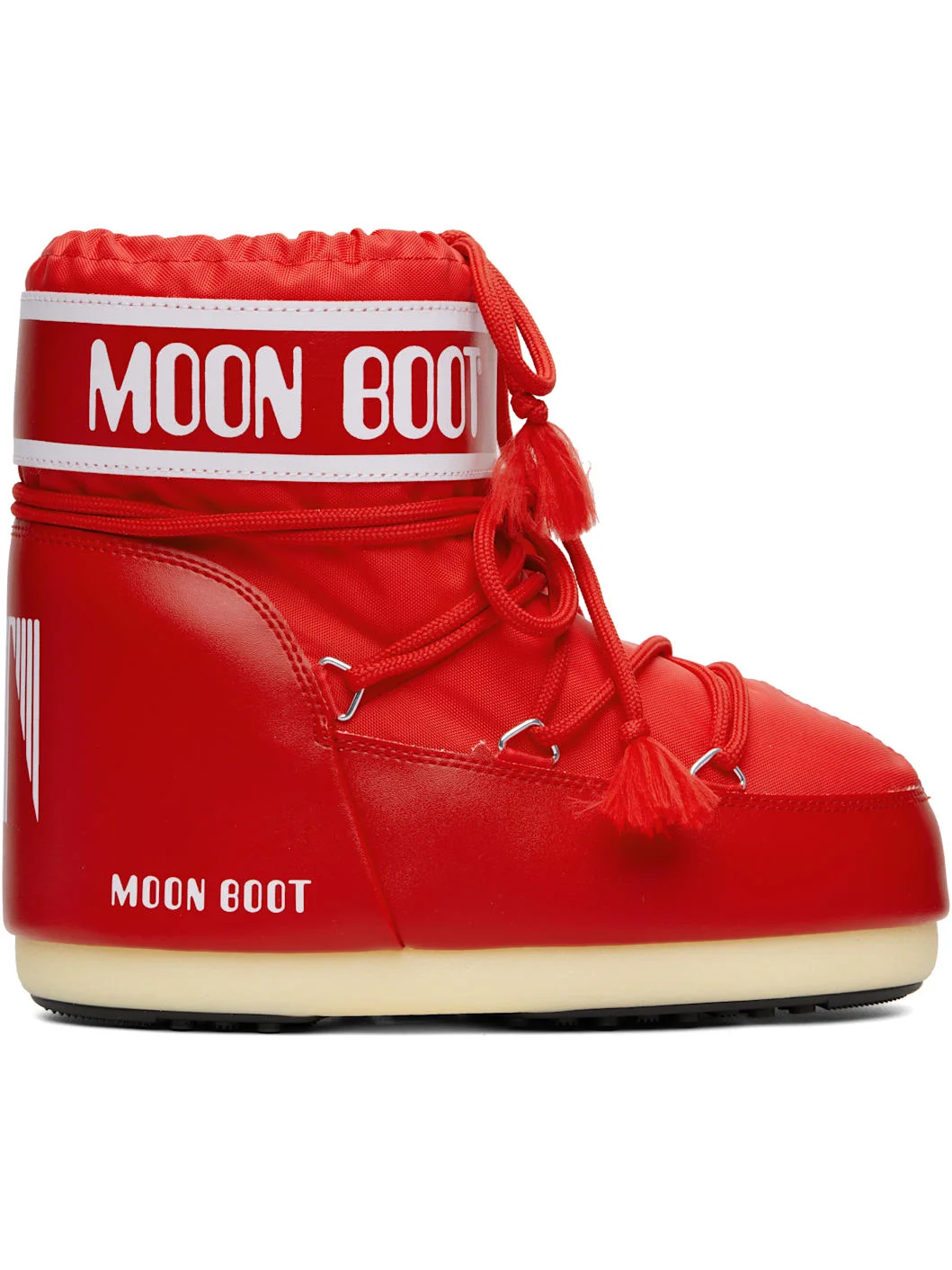 Ankle-high insulated canvas and buffed faux-leather boots. · Ambidextrous construction · Water-repellent · Lace-up closure · Drawstring at padded collar · Logo printed at sides and heel · Fleece lining · Lightweight rubber platform midsole · Treaded rubber sole · Platform: H2" Supplier color: Red Upper: textile, synthetic. Sole: rubber. Made in Hungary 261970M255010