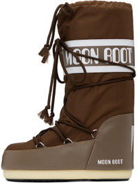 Mid-calf insulated buffed faux-leather and nylon canvas boots in brown. · Water-repellent · Lace-up closure · Drawstring at collar · Logo printed at sides and heel · Fleece lining · Lightweight rubber platform midsole · Treaded rubber sole · Platform: H2" Supplier color: Shitake Upper: textile, synthetic. Sole: rubber. Made in Hungary 251970M255037