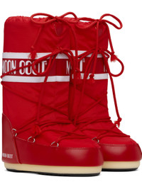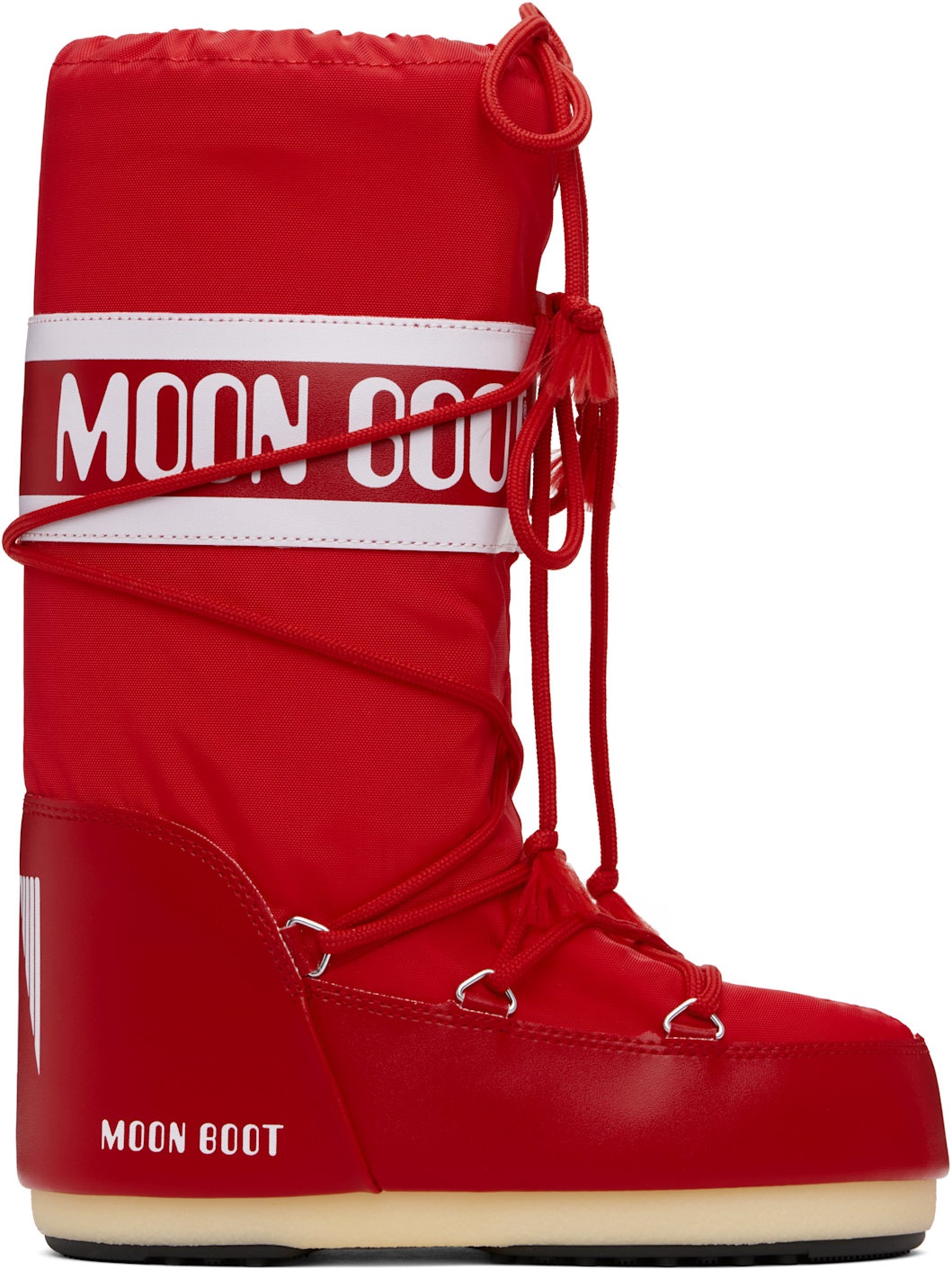 Mid-calf insulated buffed faux-leather and nylon canvas boots in red. · Water-repellent · Lace-up closure · Drawstring at collar · Logo printed at sides and heel · Fleece lining · Lightweight rubber platform midsole · Treaded rubber sole · Platform: H2" Supplier color: Red Upper: textile, synthetic. Sole: rubber. Made in Bosnia And Herzegowina 251970M255046