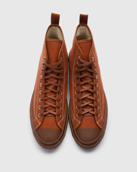 Details The Hi Basket Sneaker from Moonstar draws inspiration from vintage '50s basketball trainers.The shoes are designed with a pull tab at the back and high-top cut designed to support the ankle for sharp cuts and lateral movement. Crafted in Japan, these sneakers feature a sturdy heavyweight canvas upper and are equipped with vulcanized rubber soles. The shoes are meticulously crafted using the traditional "Ka-ryu" technique, where the outsoles are fired in a kiln at 240°F, ensuring increased strength and durability, making them resilient even after extended wear. - Made using the artisan kiln fired "Ka-ryu" process - Textured rubber out-sole - Heavyweight canvas upper - Vulcanized construction - Reinforcement at heel and toe - Pull tab - Cushioned in-sole - Made in Japan Brand Info Since 1873, Moonstar has been handcrafting canvas sneakers in their Kurume, Fukuoka studio. As the parent company of Shoes Like Pottery, Moonstar uses the same "Ka-ryu" vulcanizing process to meld the sole to each shoe, resulting in a more durable and longer-lasting sneaker.