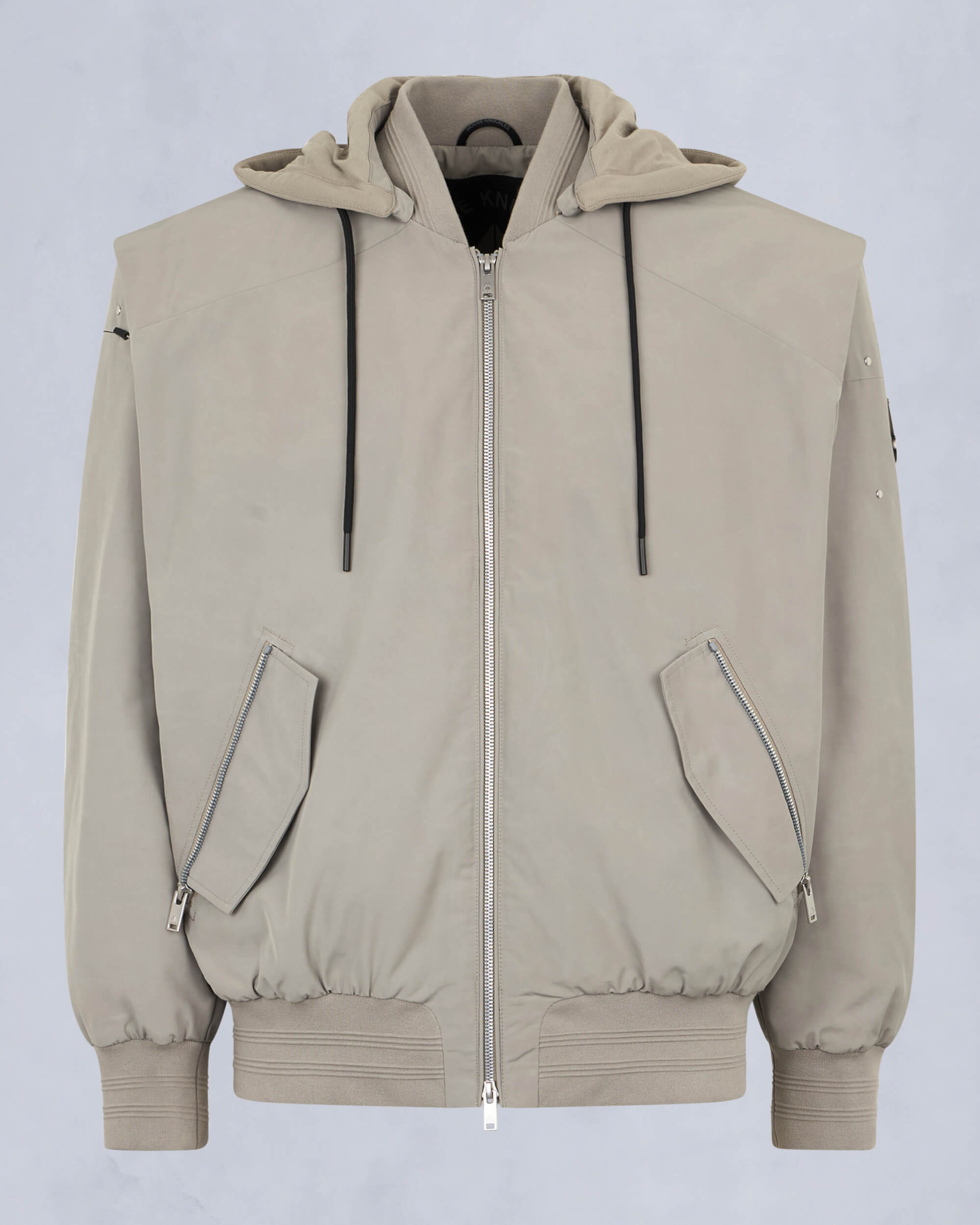 In an essential color, this lightweight bomber jacket is perfect for light showers. Practical and stylish, it’s a must-have layer for those unpredictable days. Size & Fit - Relaxed Fit : An easy and comfortable silhouette, cut with extra room on the body to allow for freedom of movement. It provides added shape, and it is comfortable. - 27" (67cm) Back Length. Measurement is done based on a Medium. Product Features Warmth & Protection - Engineered in Canada, Reversible, Water Repellent, Water Resistant, Wind resistant Design & Function - Removable Hood, Adjustable Hood with Drawcord - Rib Knit Collar - Two-Way Zipper with Logo Puller - Two Pockets with Snap and Zipper Closure at Waist and Pocket with Hidden Zipper Closure on Sleeve - Rib Knit Cuffs and Waistband - Medium Gunmetal Metal Logo Moose Knuckles Silicone Patch at Back Neck SKU: 822185771809 Materials & Care Fill 100% Recycled Polyester Fill Composition - Body: 100% Polyester, 100% Cotton - Lining: 70% Polyester, 30% Rayon Care Machine wash cold water inside out. Wash dark colors separately. Do not bleach. Line dry. Ironing maximum temperature 110°c. Dry clean inside out - mild process. Country of Origin Made in Vietnam