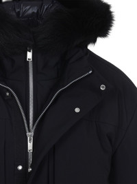 fur hooded jacket Highlights - Black - Fur trim - Front flap pockets - Zip fastening - Press-stud fastening - Zip detail at the hem Imported Composition Outer: Nylon 58%, Polyester 24%, Elastane 18% Filling: Duck Down 90%, Feather 10% Lining: Recycled Nylon 100% Washing instructions Read Manufacturer Guidelines