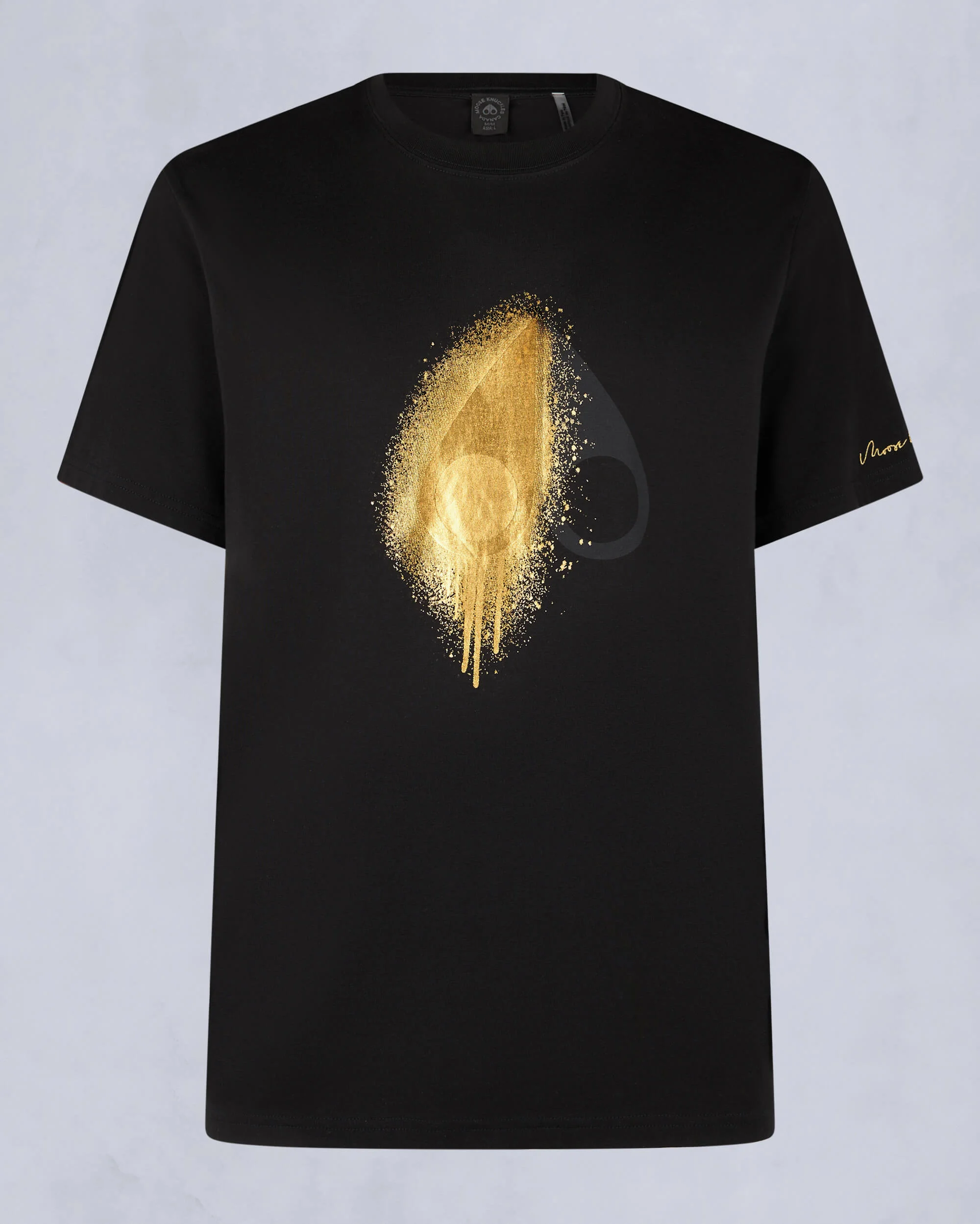 Elevate your casual rotation with our premium cotton tee, featuring a gold spray-paint motif adorning our logo for an artful touch. Size & Fit - Regular Fit : Regular is an understated silhouette, cut with room for movement throughout the chest and arms. It offers added agility without sacrificing structure and it comfortably accommodates midweight layers. - Model is 6'2' wearing size M - 27" (68cm) Back Length. Measurement is done based on a Medium. Product Features Design & Function - Rib Knit Collar - Gold Spray Paint Logo on Chest and Gold Moose Knuckles Script on Sleeve Hem SKU: 822185670553 Materials & Care Composition - Body: 100% Cotton Care Machine Wash Cold Water Inside Out. Wash Dark Colours Separately. Do Not Bleach.Line Dry. Ironing Maximum Temperature 110°C. Dry Clean Inside Out - Mild Process. Country of Origin Made in Peru