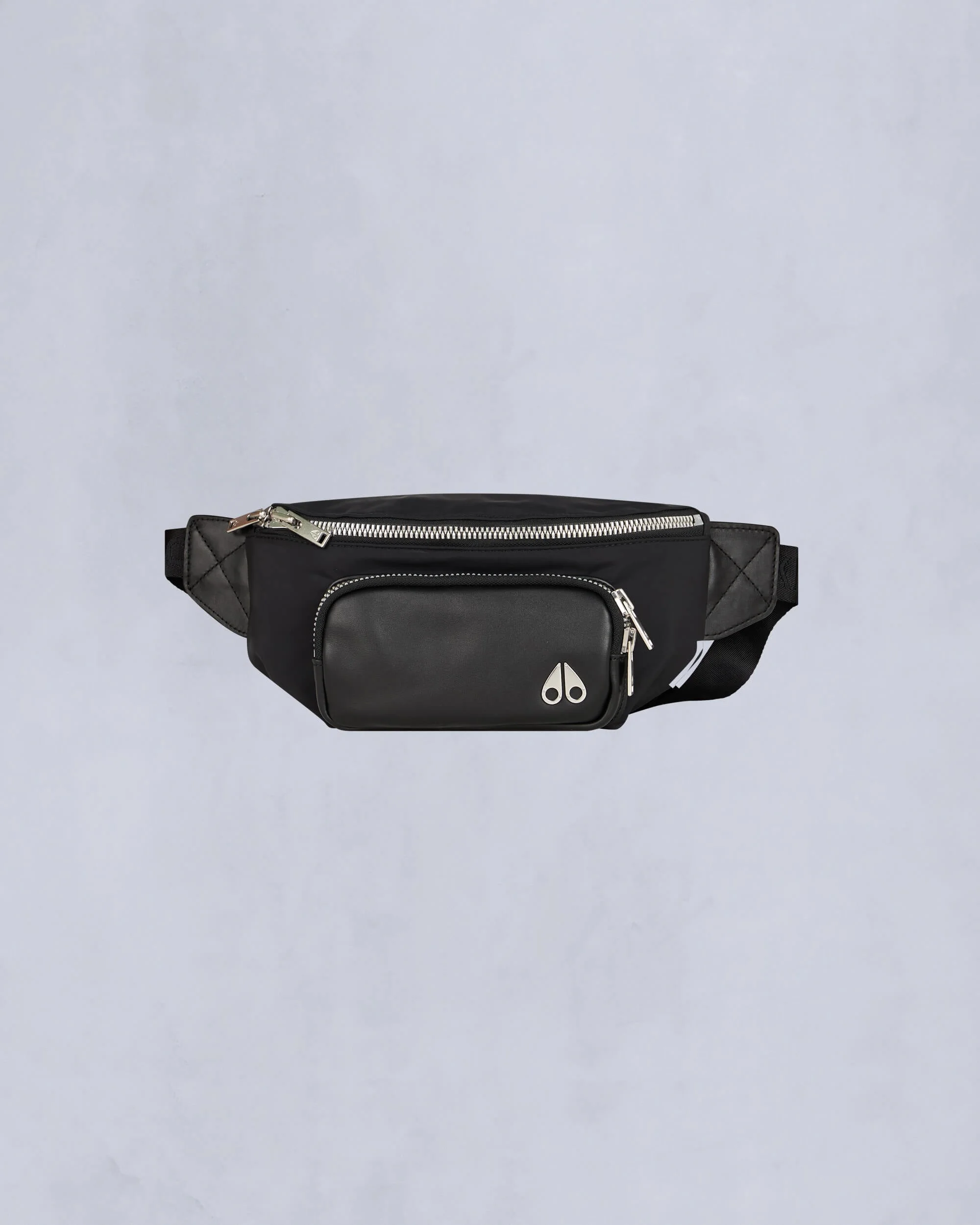 Consider the Logo Waist Bag for your everyday carry. It's compact yet spacious with a durable nylon shell, featuring an external leather pocket, main pouch, and mesh zipper pocket for easy organization. Wear it around your waist or over your shoulder, thanks to the versatile strap. Product Features Warmth & Protection - Adjustable Strap with Buckle Closure - Engineered in Canada Design & Function - 2-Way Zipper - Zip Pocket on Exterior, Zip Mesh Pocket on Interior - Small Metal Logo SKU: 822185694351 Materials & Care Composition - Body: 100% Nylon - Lining: 100% Cotton Care Spot Wash Only. Country of Origin Made in China