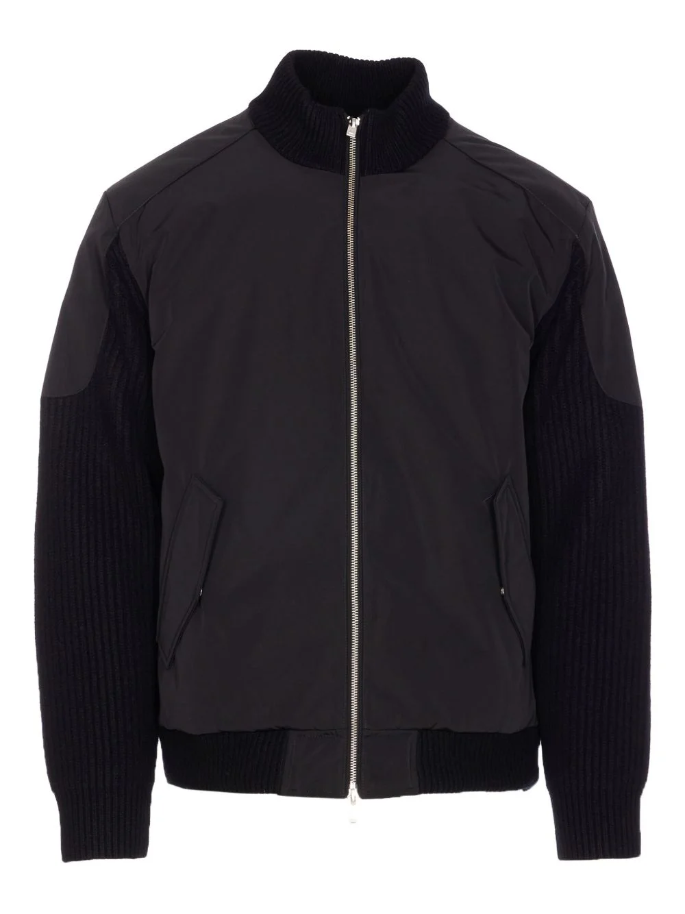 contrast-panel bomber jacket Highlights - Black - Zip closure - Padded panel - Knitted sleeves - Buttoned pockets - Logo patch Imported Composition Outer: Wool 100% Lining: Polyester 100%, Duck Down 90%, Feather 10% Washing instructions Read Manufacturer Guidelines