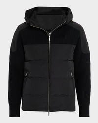Moose Knuckles "Glenvale" hybrid jacket featuring a padded front and ribknit panels Hooded drawstring neckline; twoway zip front Gunmetal logo on left sleeve Front angled zip pockets Regular fit Wool/polyester Lining: Polyester Feather/down filling Dry clean, hand wash Imported