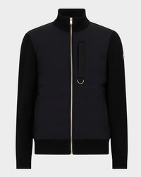 Moose Knuckles presents the "Kamet" hybrid jacket with the coziness of a downfilled jacket and easytowear knit detailing Ribknit collar; exposed zip closure Quilted nylon front; knit back and sleeves Long sleeves; logo patch on left sleeve Welt/zip chest pocket with Dring Side slip pockets Viscose/polyester/nylon Fill: duck down/feather Machine wash in cold water inside out Imported